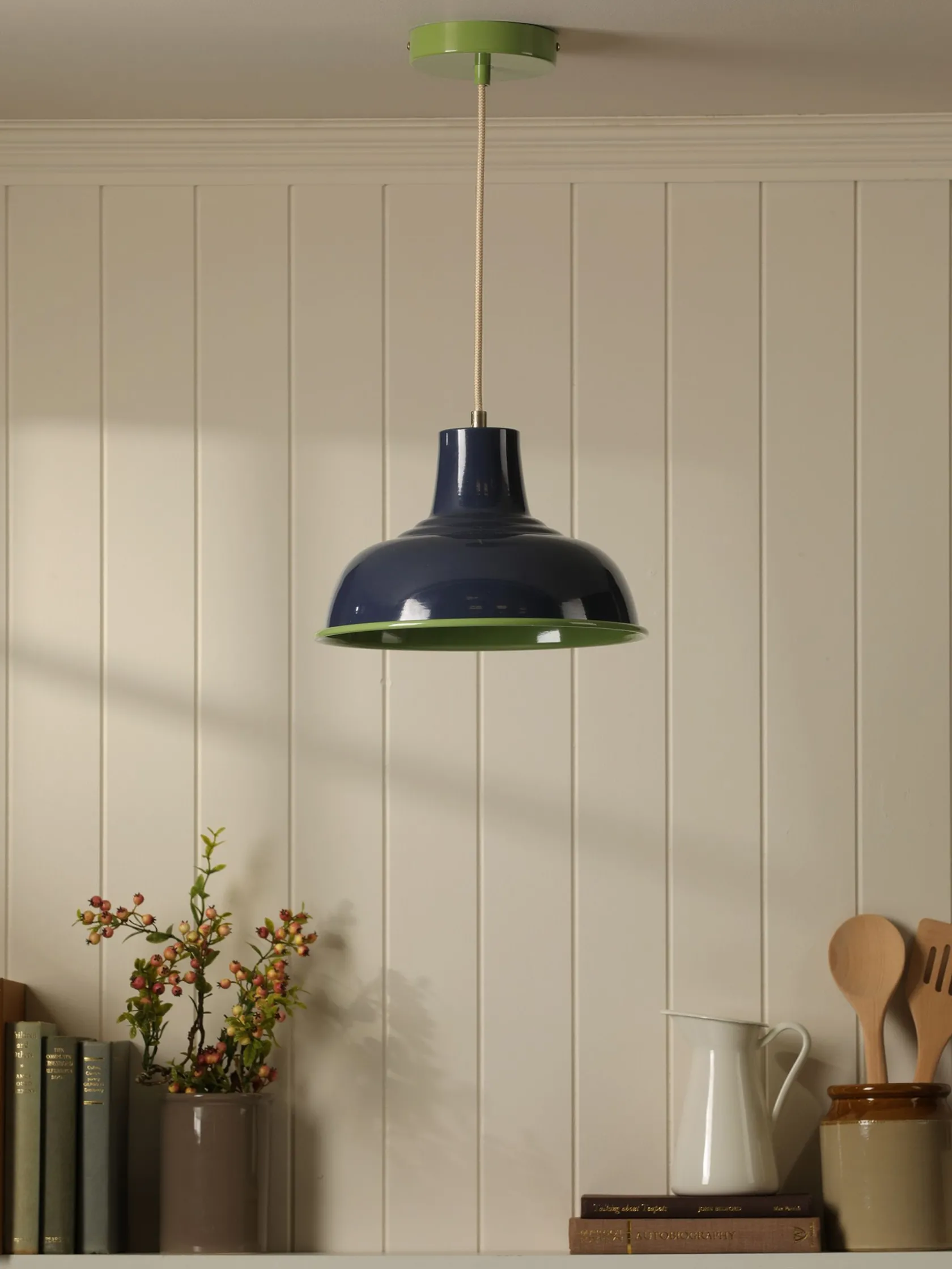 Best Joules Hatfield Navy & Green Industrial-Style Pendant Light Navy&Green