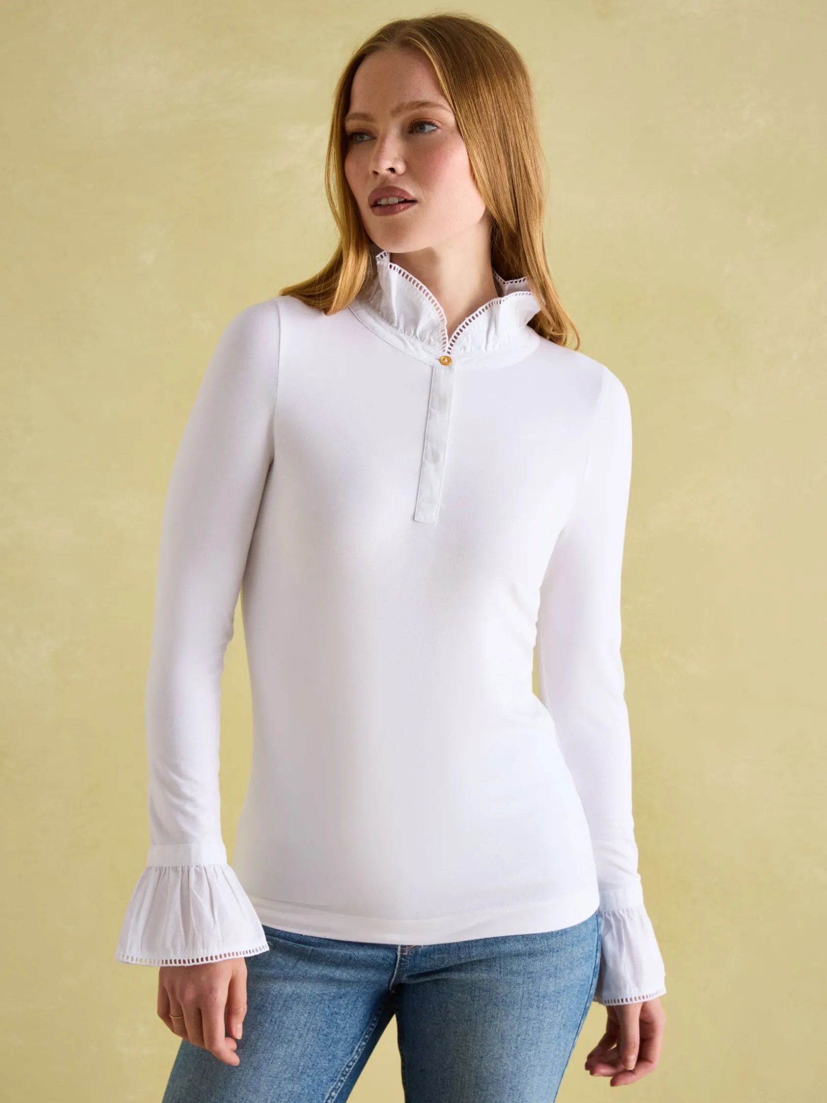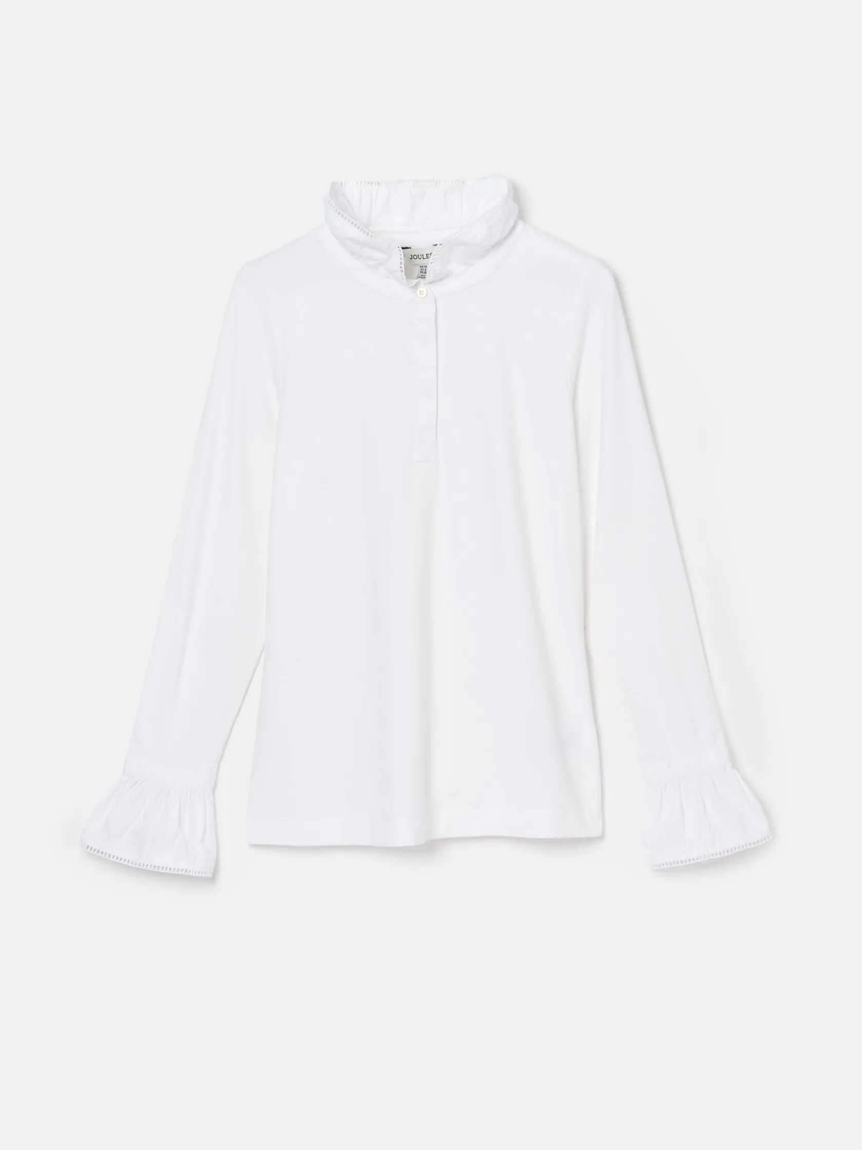 Clearance Joules Kate Long Sleeve Frilled Neck Top White