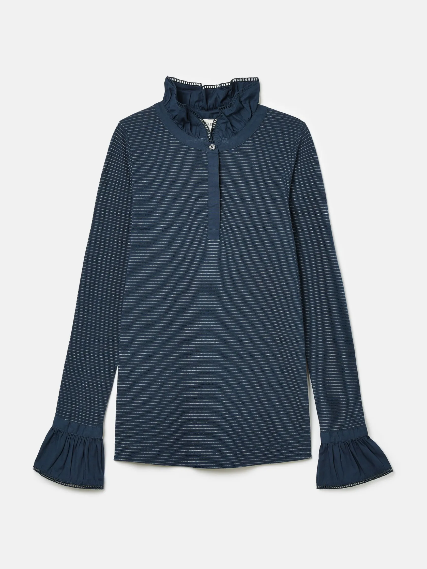 Clearance Joules Kate Navy Sparkle Long Sleeve Frilled Neck Top NavySparkle