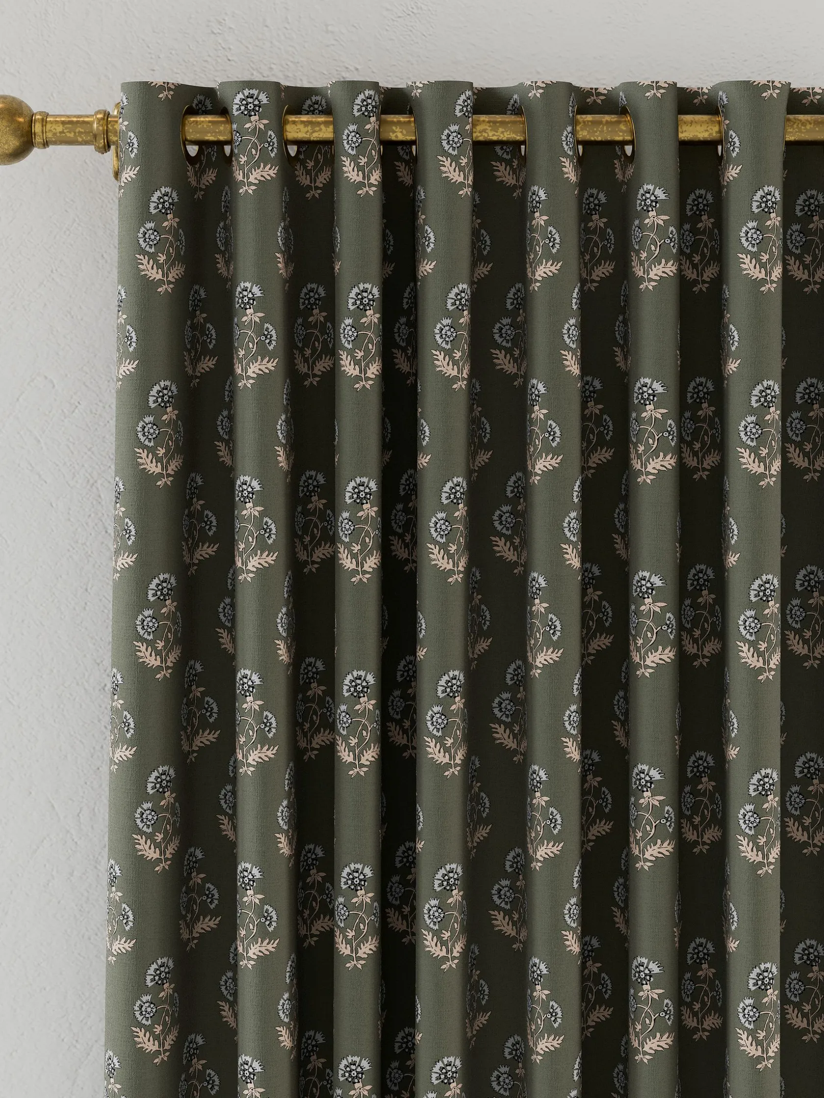 Achieve the feeling of calm and tranquility in your home with the Chamomile floral curtains. Perfect for elevating any room, they’re adorned with a floral print which uses a soft colour palette to complement homes old and new. They’re made from 100% cotton and have a matte silver eyelet header which makes them easy to hang and allows the curtains to fold away neatly. A blackout lining not only ensures your privacy and keeps out the light, but also gives the curtains structure allowing them to drape beautifully. Choose from six sizes to fit a variety of windows.100% cotton. Blackout lining. Metal eyelets. Chamomile floral print. Six sizes available
