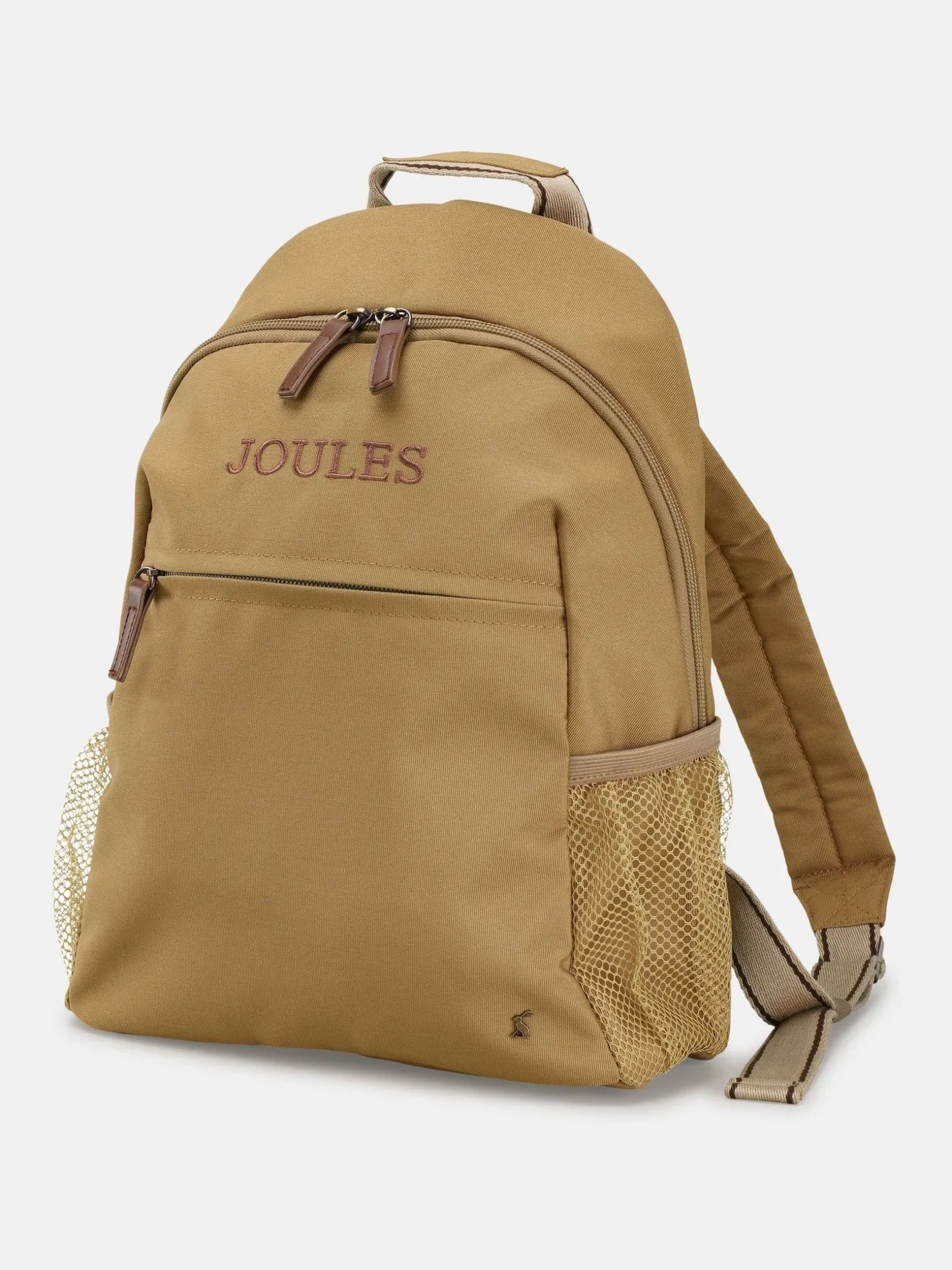 Designed to work hard in your accessory collection, the Joules small backpack is perfect for everyday commuting or exploring the great outdoors. It’s entirely functional though its well-considered details, yet remains stylish through the neutral colour palette and unique checked lining. Adjustable padded shoulder straps makes it comfortable to carry, while multiple pockets including a zipped pocket to the front and two mesh side pockets gives plenty of storage space for smaller items. The main zipped compartment has nifty dual-access via the main fastening and additional two back slots so you can access your items on the go. Inside features a zipped laptop sleeve and a few more pockets for good measure. It’s finished with Joules embroidered branding to the front and a strap to the back to attach to suitcases. Pick it up in the smaller size too. 35 x 27 x 11.5cm. Zip fastening with two additional zips for access to the back. Zipped front pocket. Adjustable padded shoulder straps. Fixed carry handle. Two mesh side pockets. Internal pockets including zipped laptop slot. Checked lining. Additional strap to the back to attach to luggage