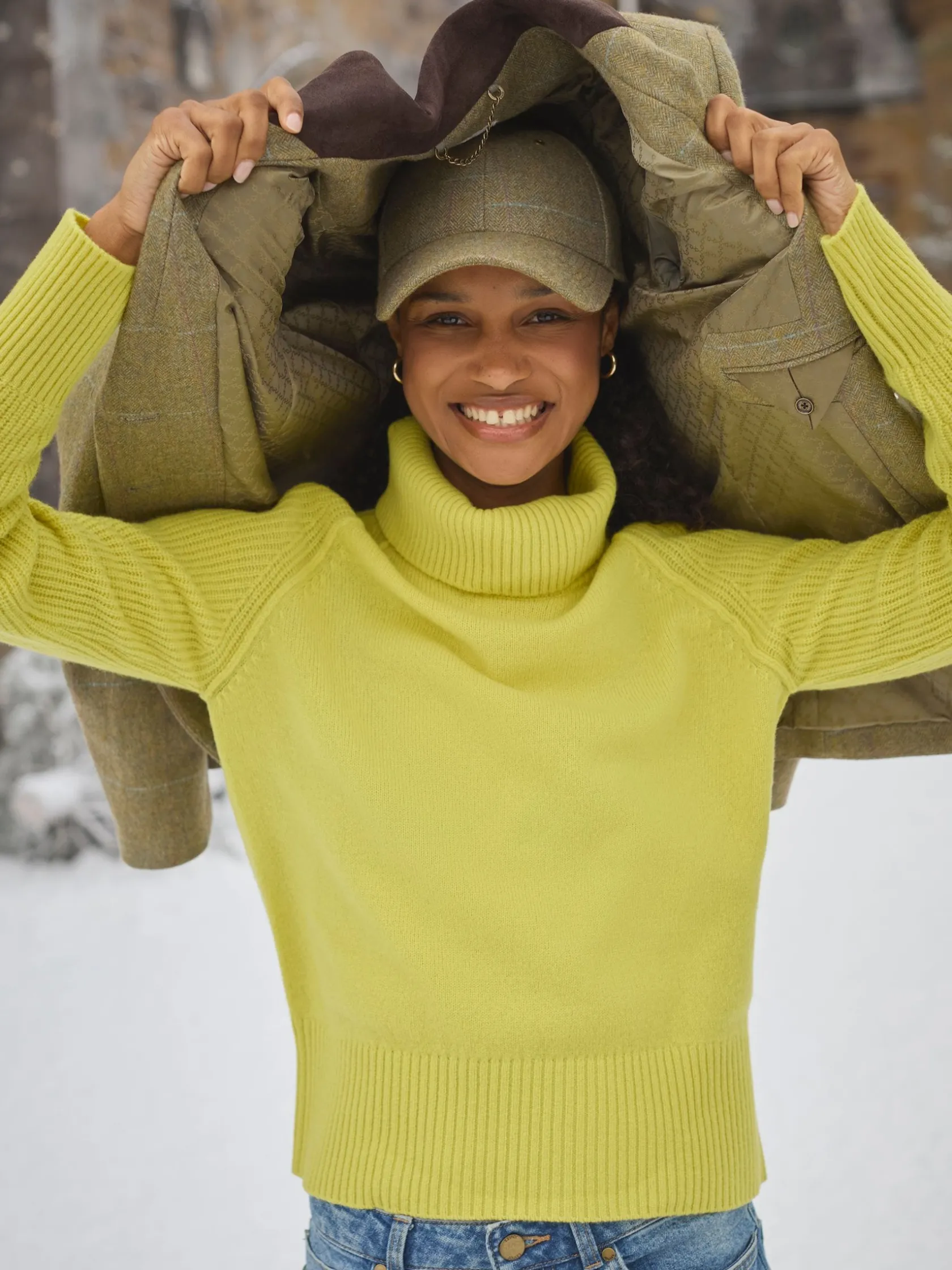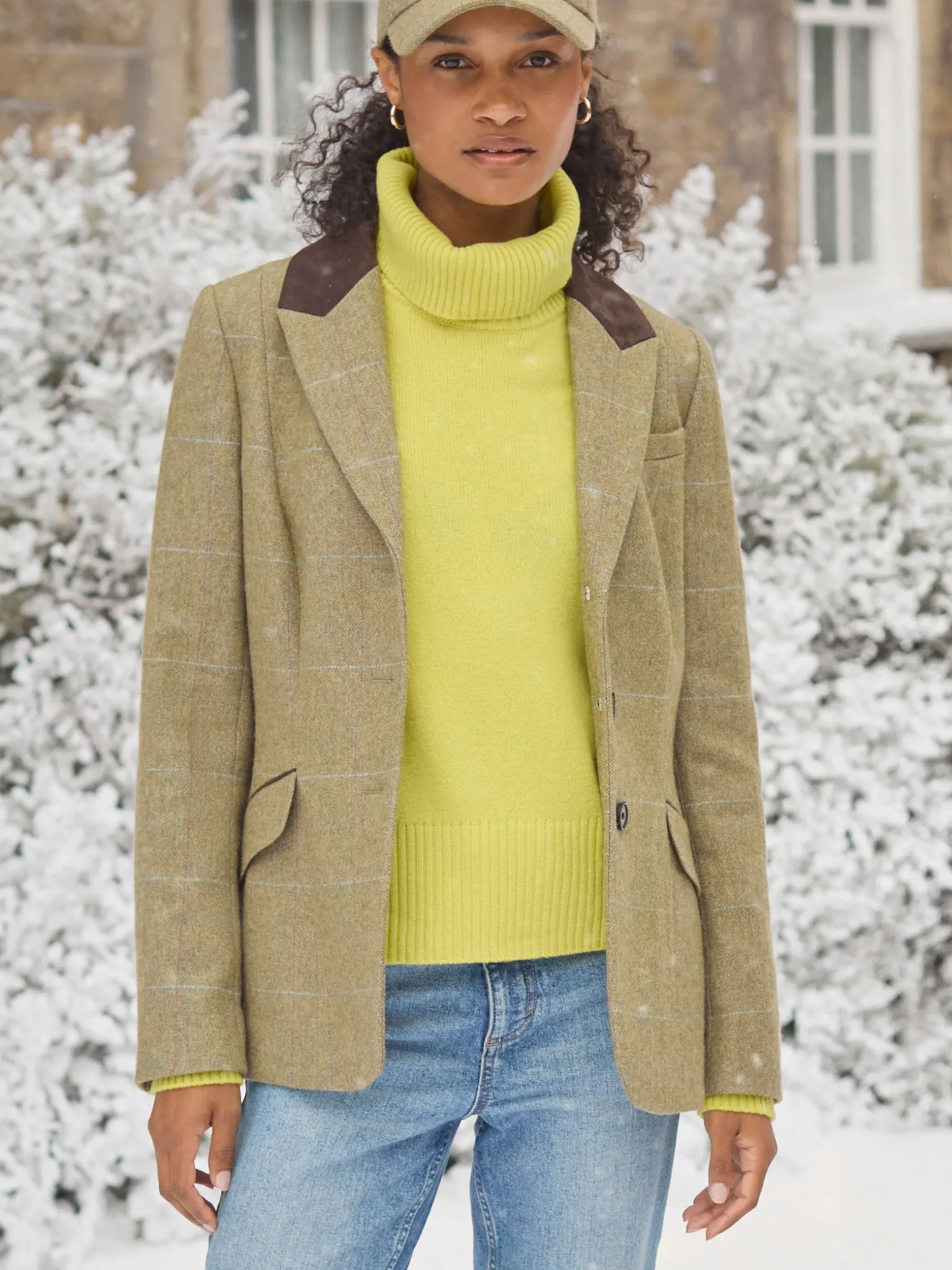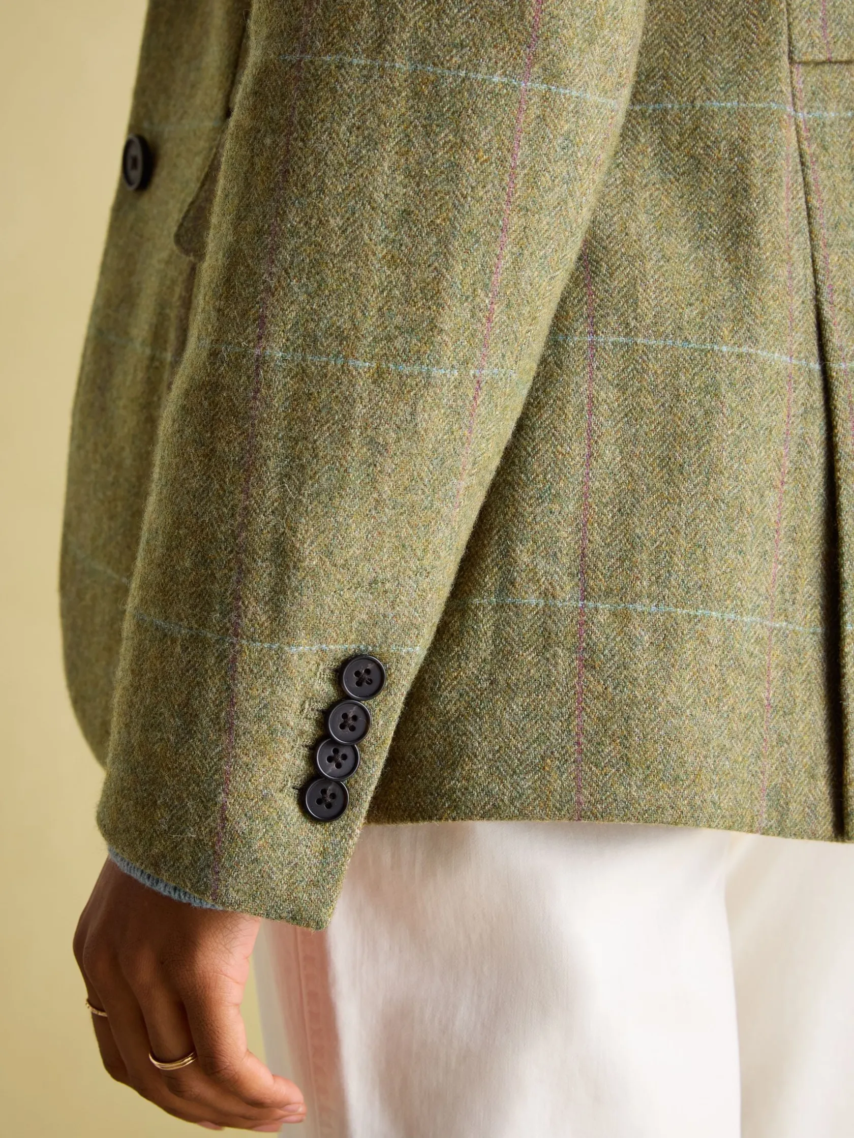 First introduced in the late 1800s as a practical garment for horse riders, the hacking jacket was designed to be worn while riding horses and was made from durable tweed fabric that could withstand the harsh conditions of the countryside. This is our take on a classic style. Crafted from a wool blend and in a traditional shape with side panels to give extra shape and back vents for easy movement. It also features functional front pockets, an internal pocket with a button fastening and a printed lining. A timeless investment piece that’s perfect for the colder months of the year. Hacking jacket. Tweed. Flattering shape. Button fastening. Faux suede trims. Back vents. Functional front pockets and internal pocket. Back belt panel. Printed lining