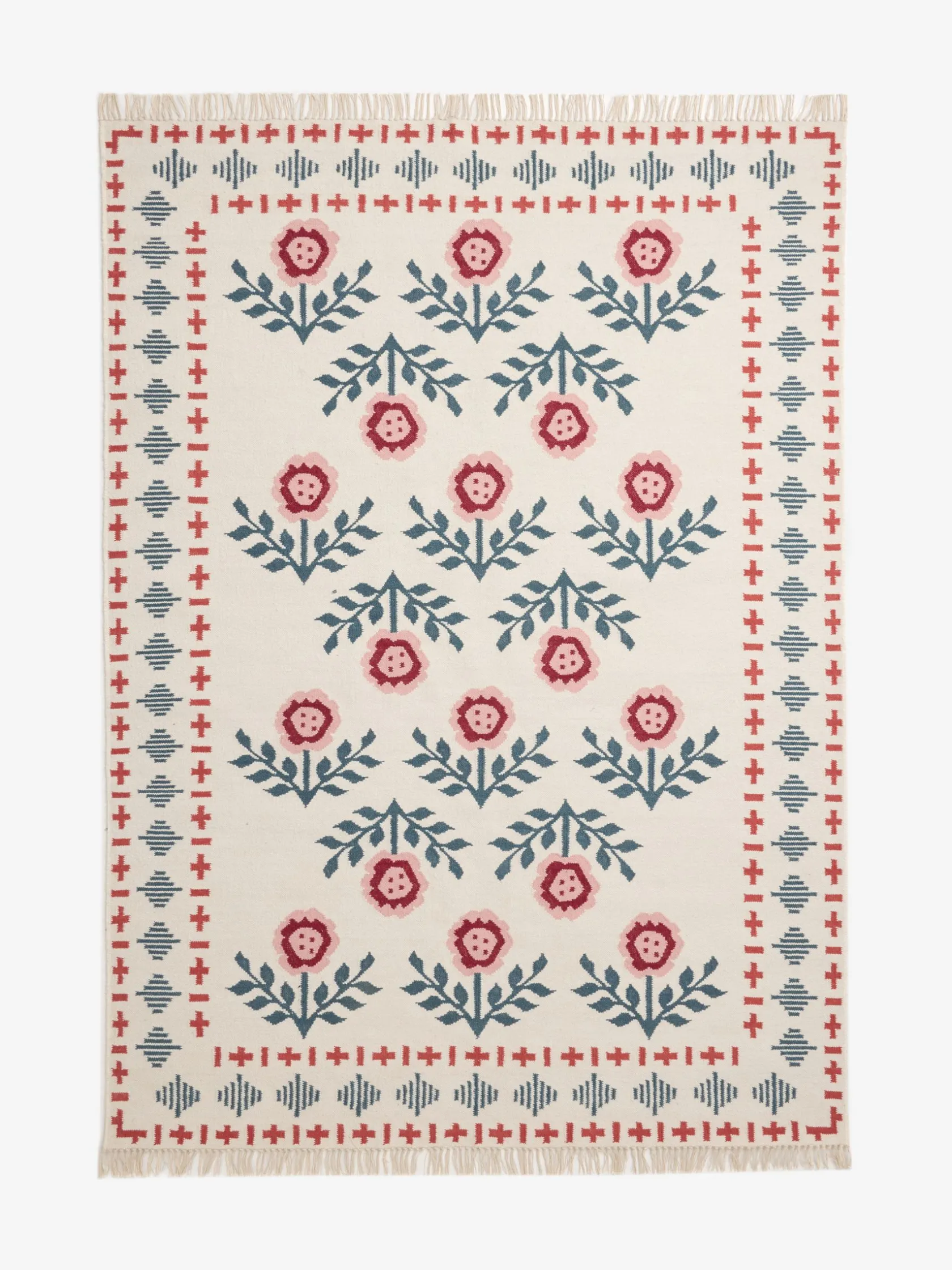 If you’re looking to refresh your home decor, or add more texture to a room, the Attingham rug is the perfect choice. Made from 100% wool and with a soft underfoot feel, it will add welcoming comfort wherever you stage it. Great attention to detail has been paid and can be seen through the hand-crafted nature of the piece and the hand-drawn print. Created in-house by the Joules print team, it depicts an array of blooms with a repeat pattern border all in an uplifting colour palette of pinks, greens, blues and reds. Inspired by traditional Kilim rugs, it has a flat weave finish that only gets softer over time. A piece like this is designed to be seen and admired, so try styling it in the hallway, living spaces or even in an open plan kitchen.