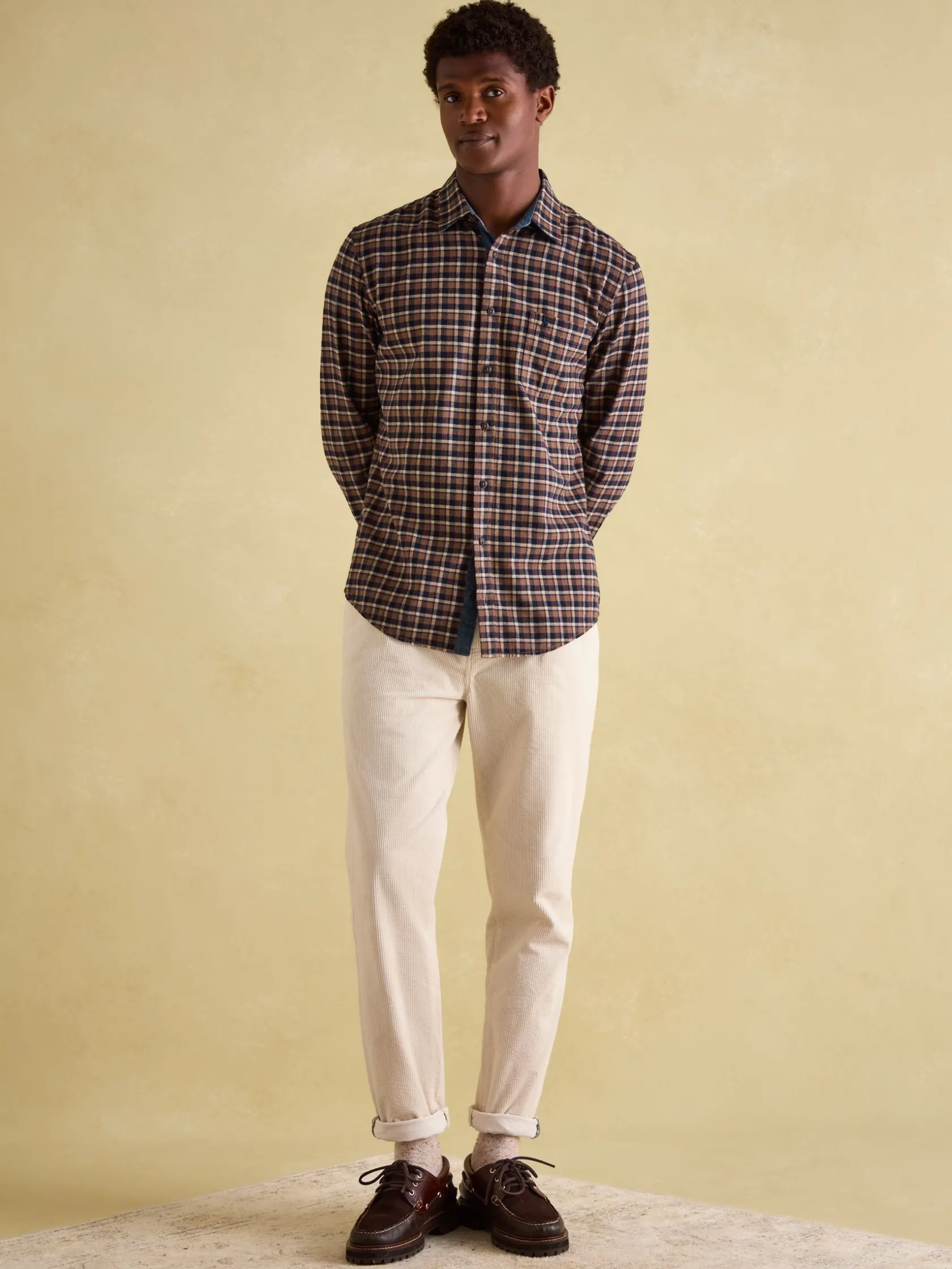 A man’s wardrobe isn’t complete without a collection of easy-going checked shirts to hand. With the Buchanan, both smart and casual boxes are ticked. Wear it unbuttoned over a T-Shirt and jeans for casual days, or buttoned up with chinos for more refined look. This all-rounder has a soft brushed fabric and an unfussy, classic fit. Other functional details include a button down fastening, button cuffs and a patch pocket to the chest. The checked pattern features a deeper colour palette for the cooler months and is finished with chambray trims. Woven. Classic fit. Long sleeves. Button fastening. Button cuffs. Collar. Chambray trims. Hanging loop to the back. Checked.