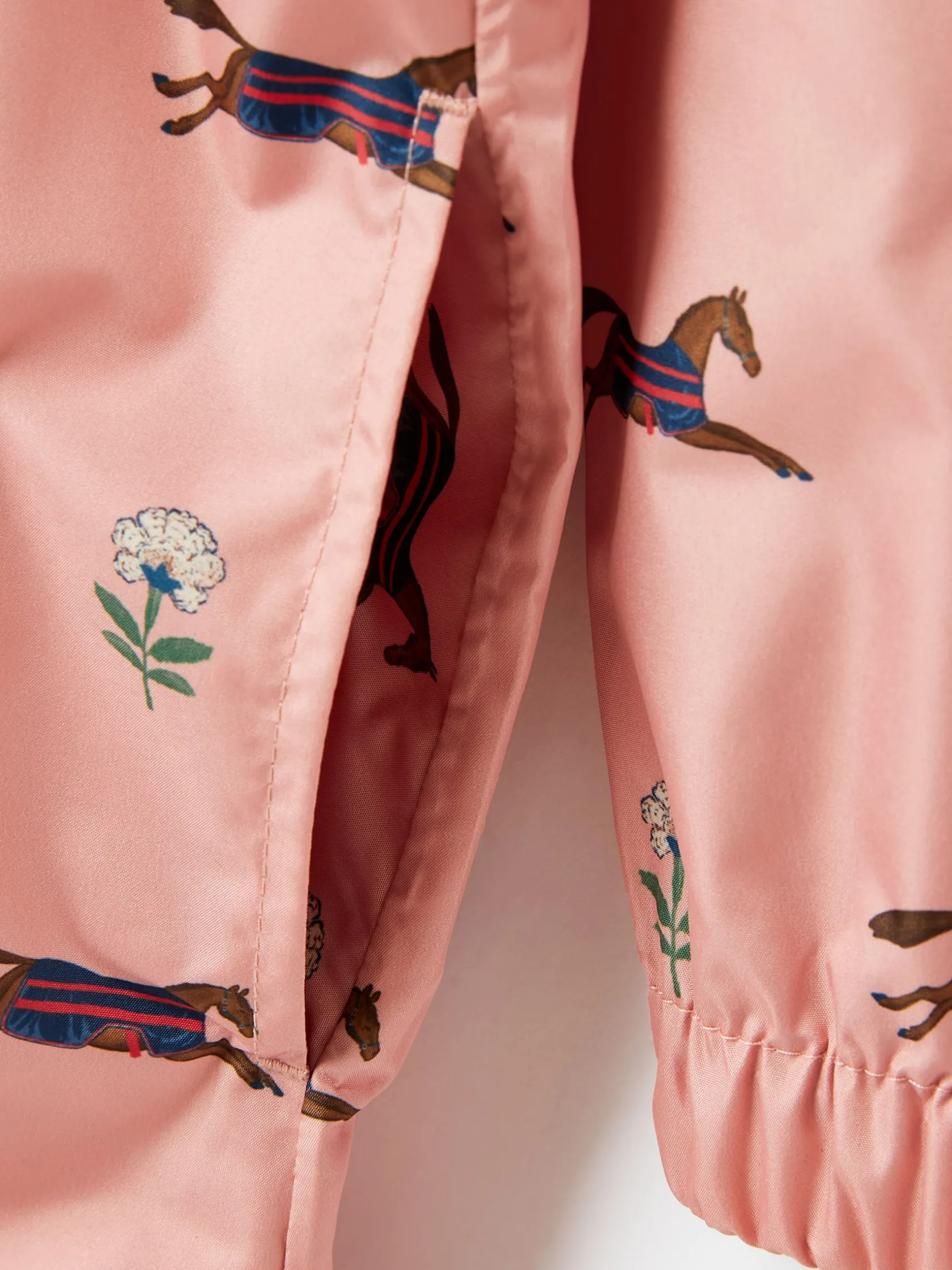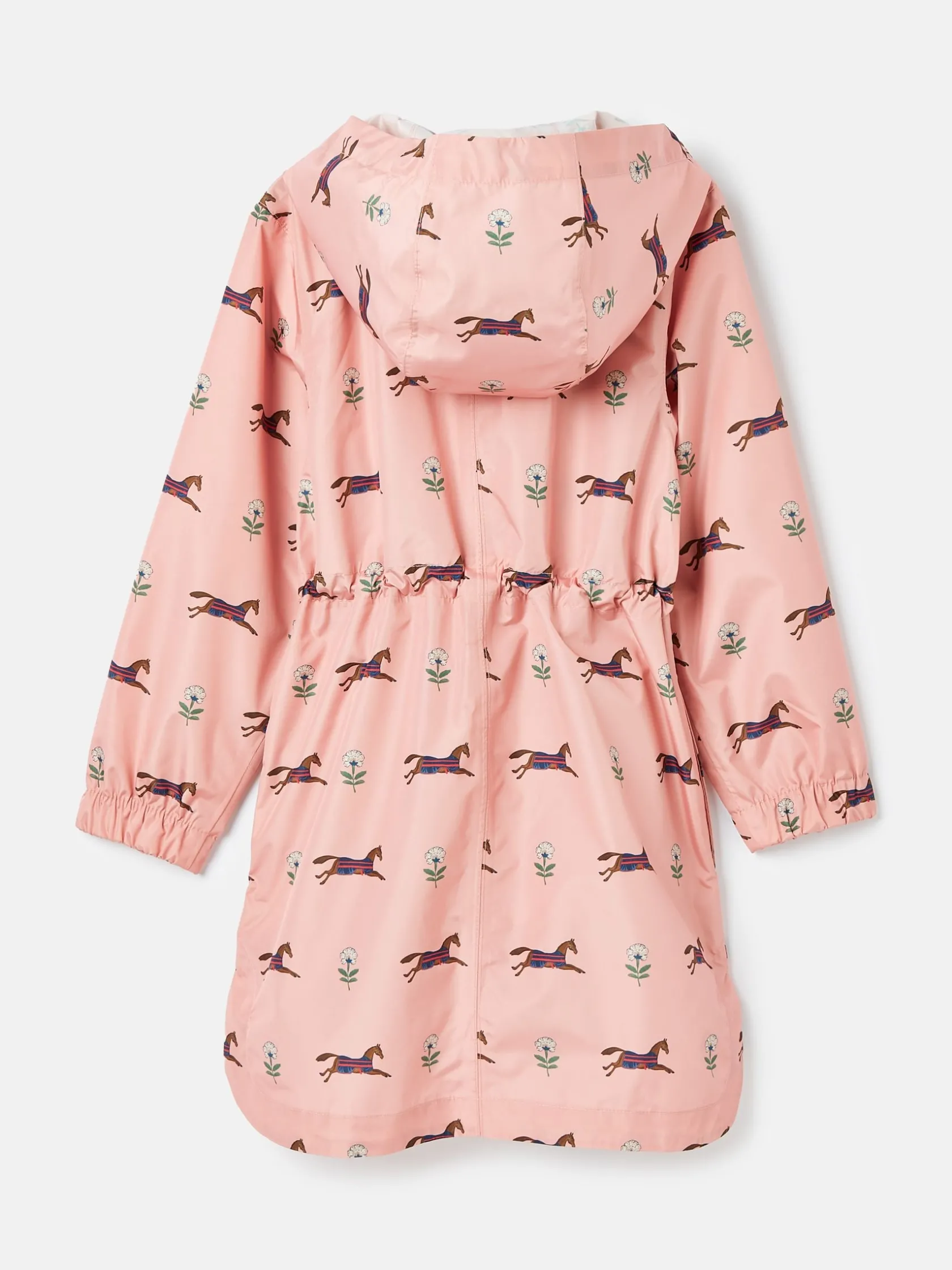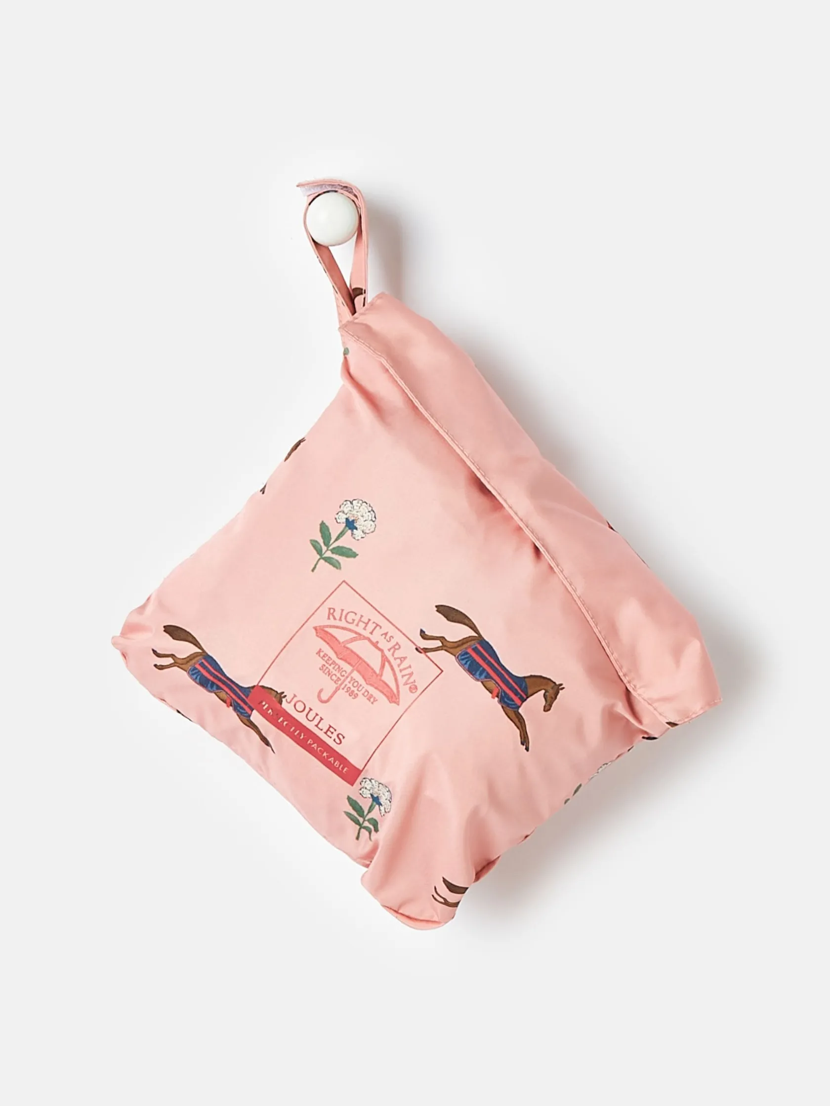Hot Joules Girls’ Rainford Pink Horse Waterproof Packable Raincoat With Hood PinkHorse