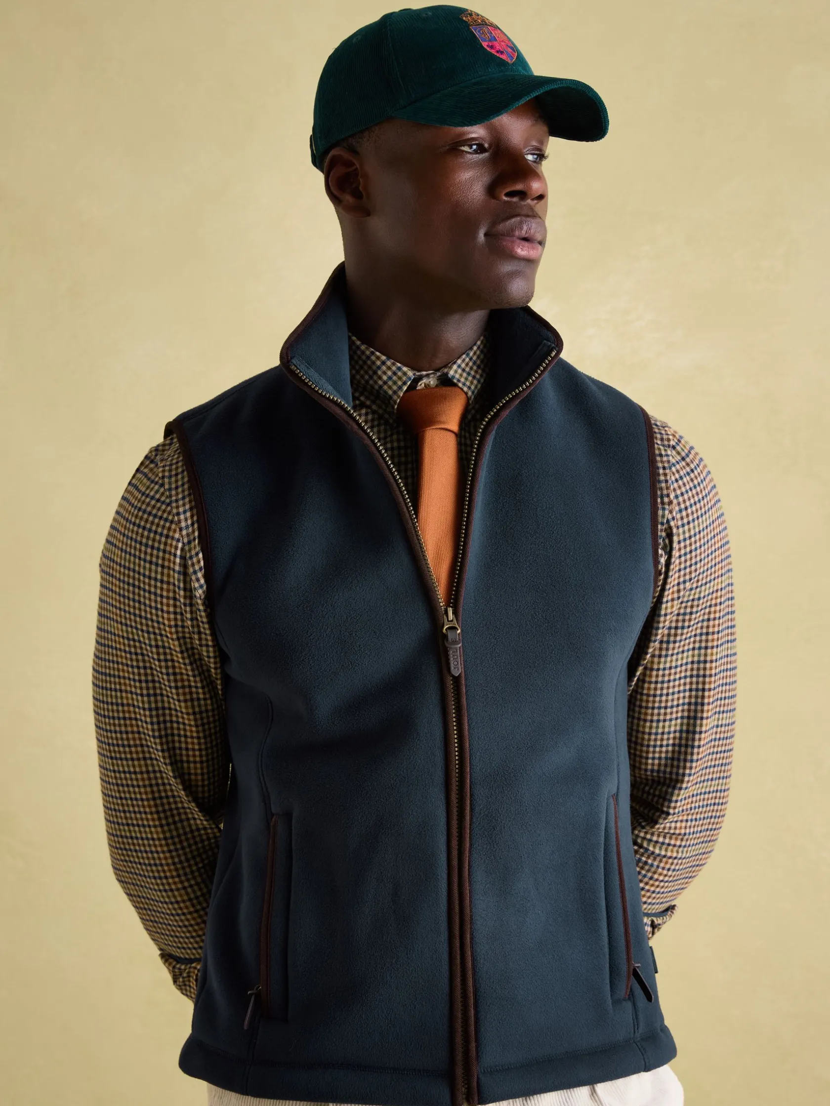 Worn over a shirt or a jumper (or both) this fleece gilet will cut a practical dash, whilst freeing your arms for clambering over stiles, foraging for autumn fruits or plundering the farm shop with ease. The funnel neck will ensure your neck stays warm, the zip fastening (with leather puller) is handy, as are the micro-fleece lined zip pocket and adjustable hem adds another level of function. nnFunnel necknZip fasteningnZip pocketsnAdjustable waistnCord trims and bindings