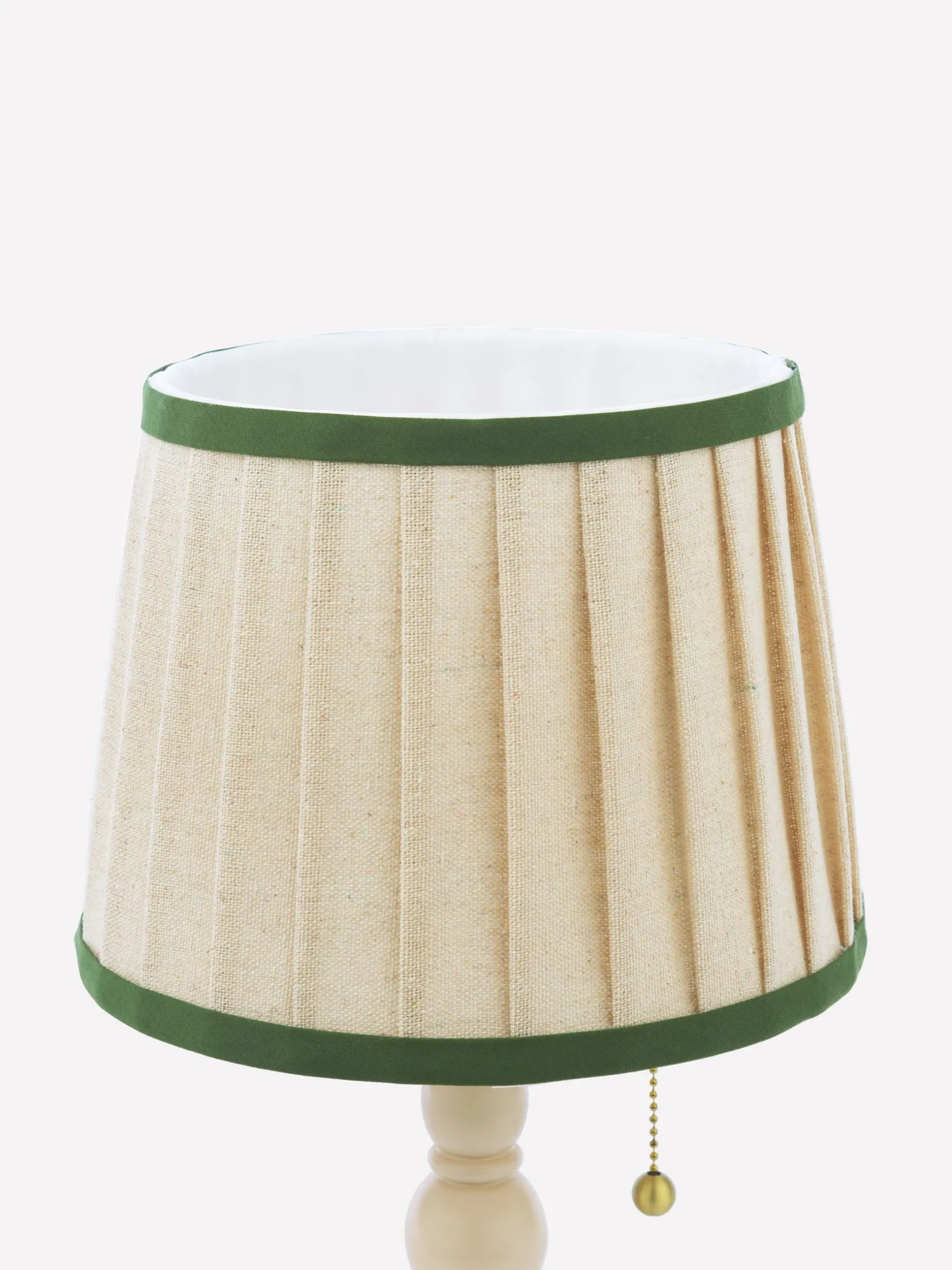 Bright, fun and with a touch of the quirky, the Harewood table lamp will be a talking-point of your home. Its sculptured stand and round base is made from rubberwood and is painted with a coloured matte paint – perfect for those with an eye for bold decor. The linen tapered lamp shade features neat pleated detailing with a coloured border and gives off a warm glow that will instantly make the room feel cosy. Its plug-in design makes it easy to use, while the pull cord function adds a touch of retro inspiration. This piece calls for turning off the overhead lights, making yourself a cuppa and flicking through the latest interior magazine. nnRubber wood stand and basenMatte painted finishnPull cord functionnPleated linen lamp shade with coloured bordernMatching Harewood floor lamp available separatelynDi: 200mm x H.390mm