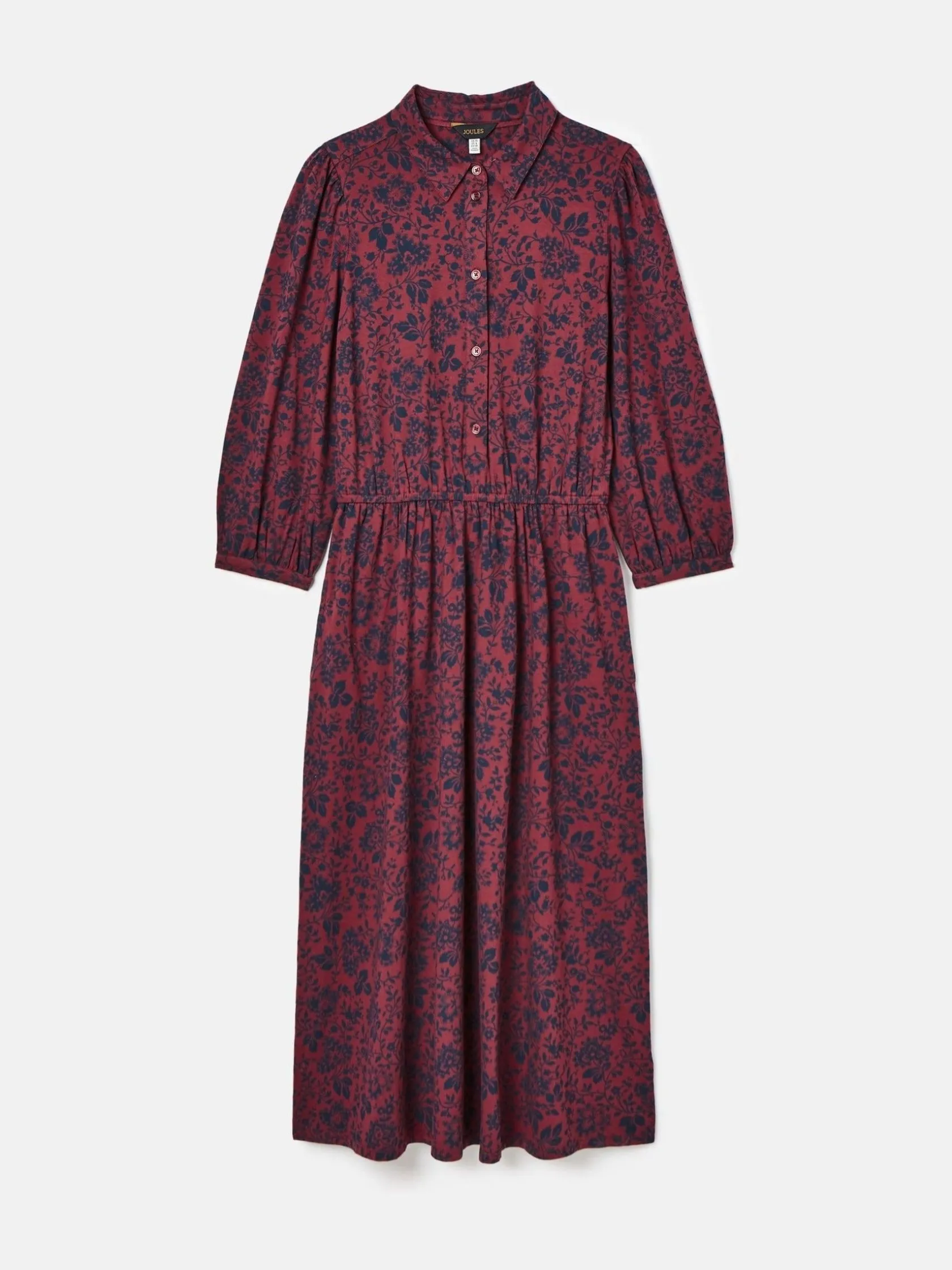 Easy-to-wear while remaining elegant and stylish, the Hazel dress is perfect for the autumn and winter season. It features a unique hand-drawn print and uses an opulent colour palette. The cotton jersey fabric makes it beautifully soft, while the midi length allows you to pair it with all kinds of footwear. A shirred waistband gives it a flattering cinch at the waist and a button placket lends itself to layering in the colder weather. Finished with pockets in the side seams! Cotton jersey blend. Midi length. Long sleeves with gathered shoulders. Button placket. Collar. Shirred waistband. Pockets in the side seams.