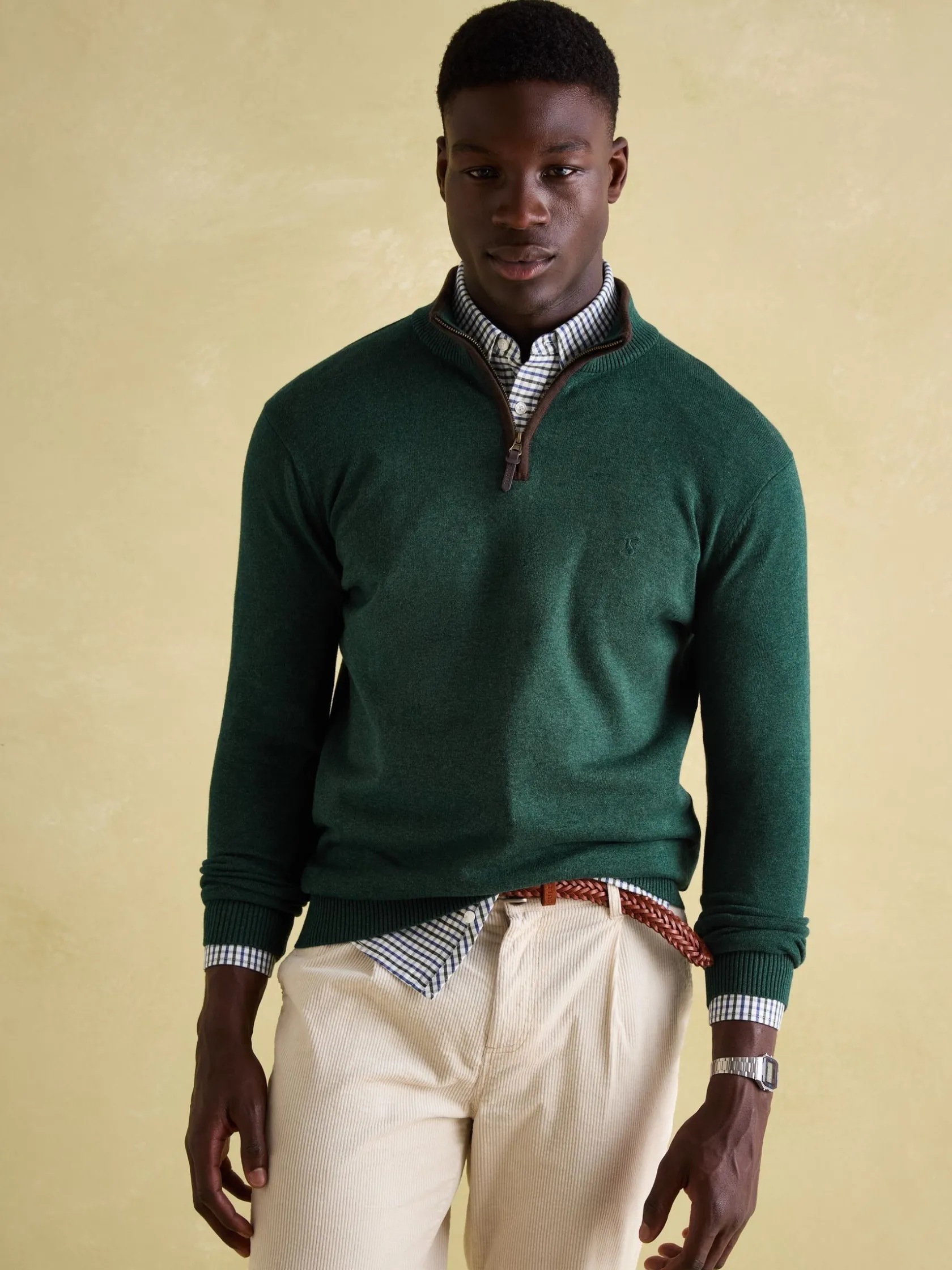 Hot Joules Hillside Dark Green Quarter Zip Knit Jumper DarkGreen
