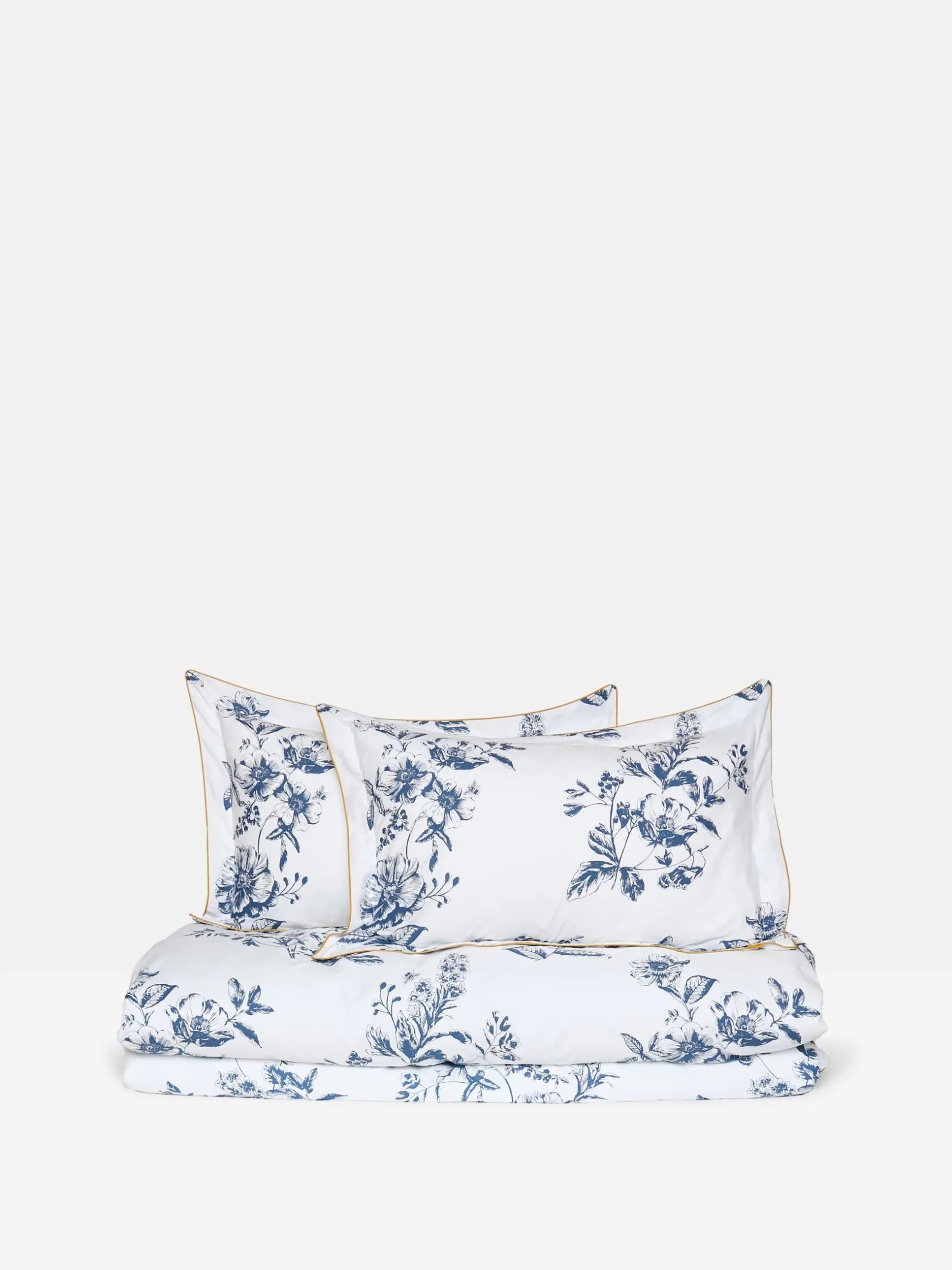 Achieving timeless country cottage style is a breeze with our Honey Floral Bedding Set. Beautiful blooms have been etched in navy upon a fresh, crème background, inspired by botanical sketches you might find in the old encyclopedia on your bookshelf. Look carefully and you’ll spot a busy bee pollinating the flowers. The reverse is a classic gingham check in tonal navy and blue shades. This set comes with two matching Oxford pillowcases with antique gold piping (single beds come with one) and can be complemented by additional standard pillowcases sold separately.