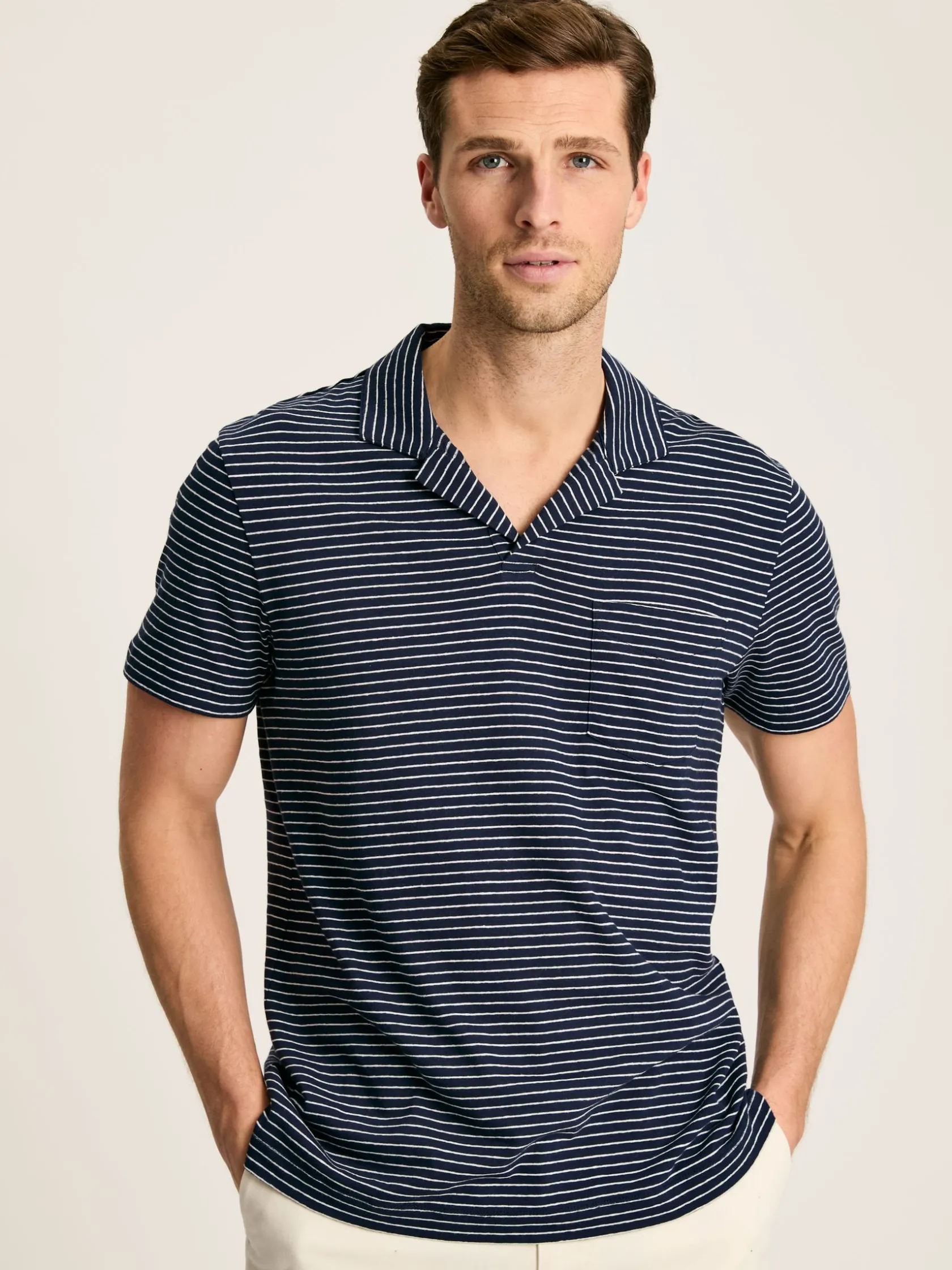 This striped polo is the ultimate addition to your warm weather wardrobe. Crafted from a linen and cotton blend the fabric is light and comfortable, while the open collar design creates laid-back appeal. It has a classic fit, a single patch pocket to the chest and stripes that speak to the season. Pair with chinos and loafers for a look that ticks the box for time off. Cotton and linen blend. Classic fit. Short sleeves. Open collar. Single patch pocket to the chest. Side splits. Striped.
