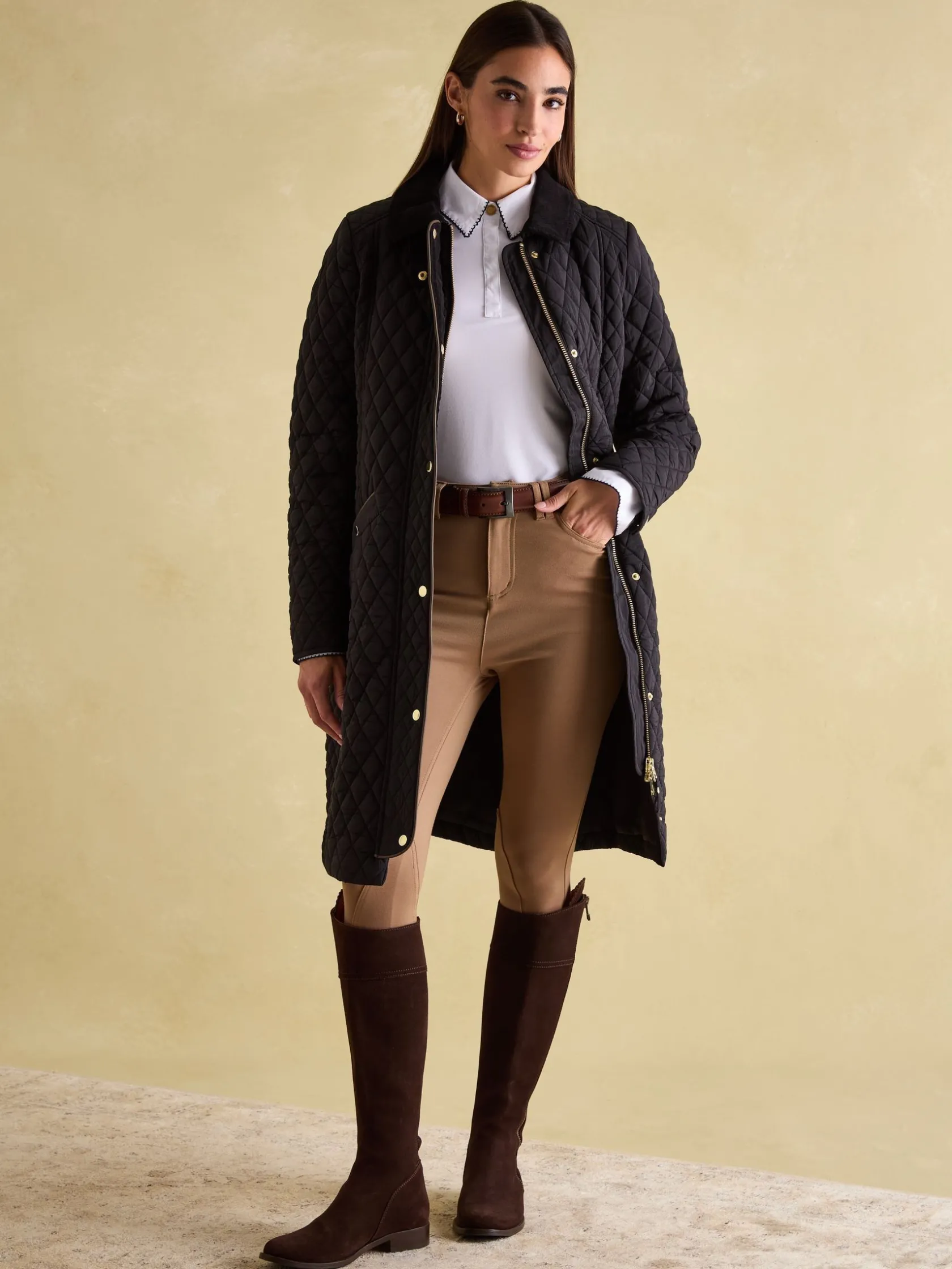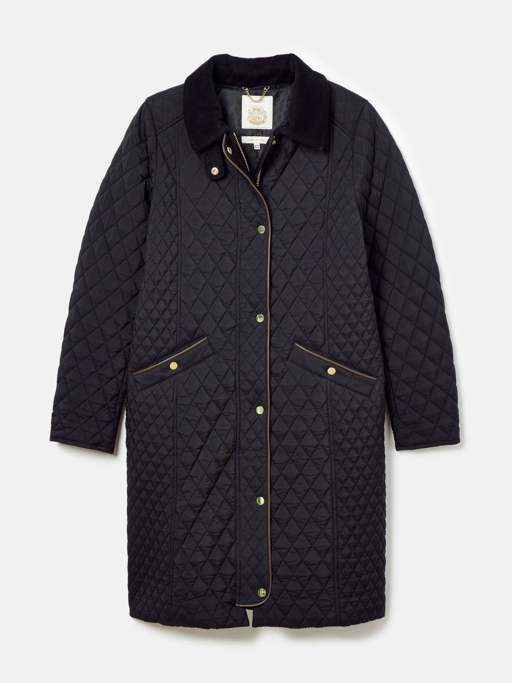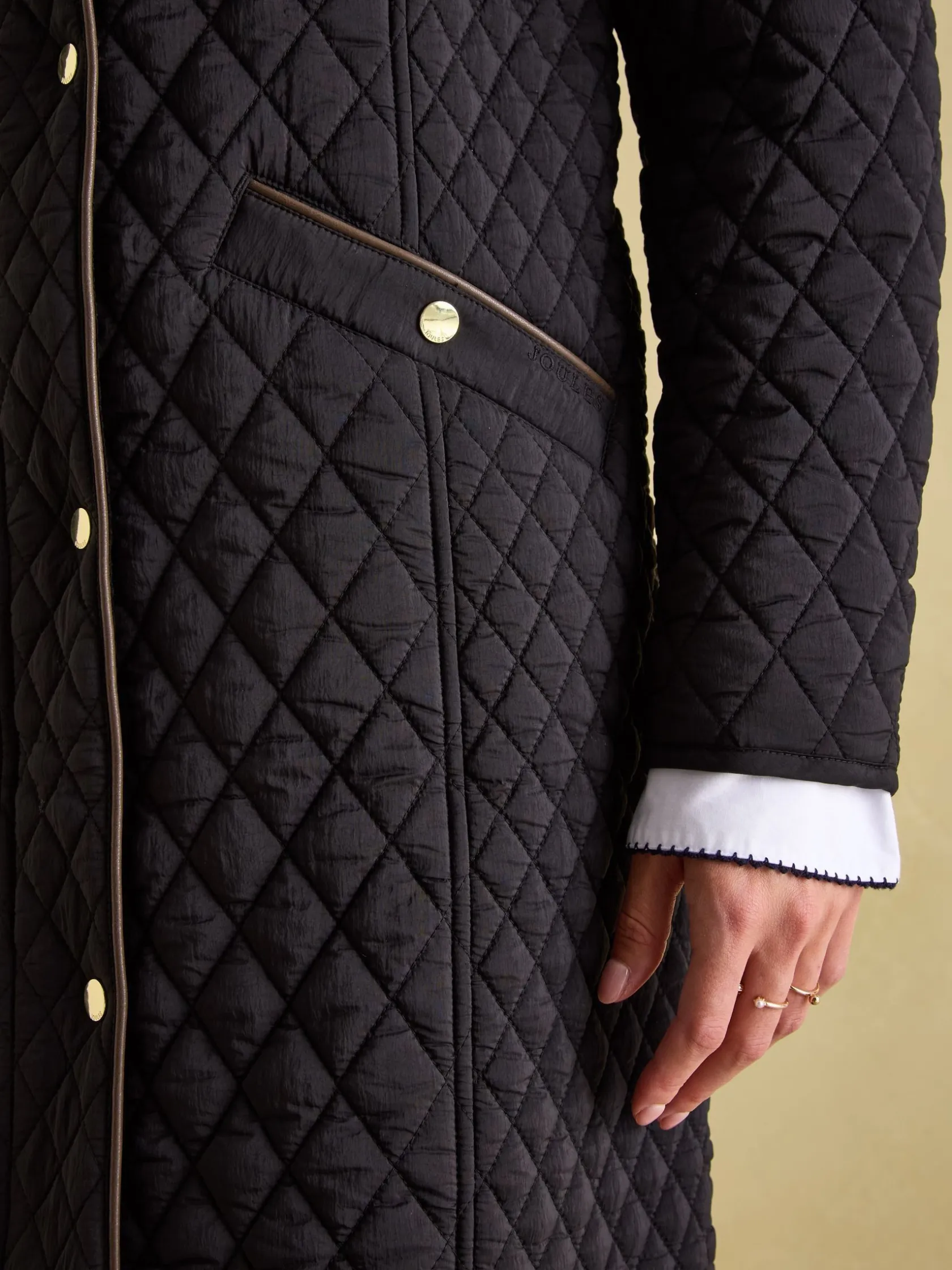 Hot Joules Rosewell Showerproof Longline Diamond Quilted Coat Black