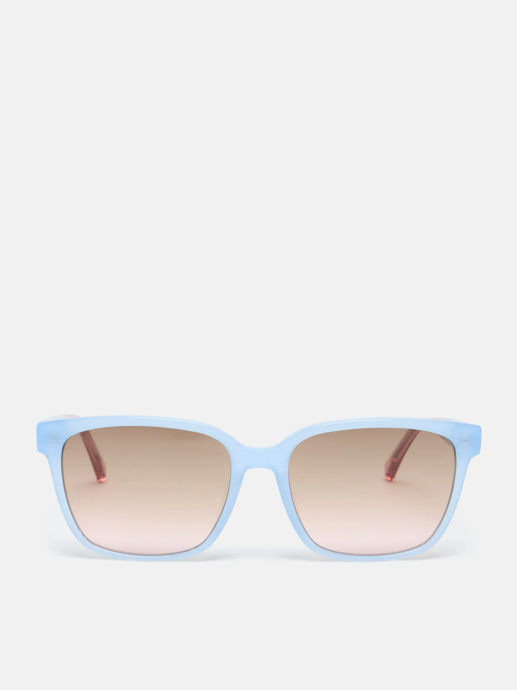 When it comes to choosing a pair of sunglasses, you simply can’t go wrong with a pair of classic wayfarers. This iconic style is designed to flatter all face shapes and will add a polished look to all your outfits. These are crafted from Acetate Renew, have a category 3 UV Rating blocking 82-92% of UV light and have brown tinted lenses. The light blue coloured rims will ensure they complement your warm weather outfits, while the pop of yellow to the temples adds a touch of flair. Crafted from Acetate Renew. Category 3 UV rating (blocking 82-92% of UV light). Wayfarer shape. Light brown tinted lenses. Light blue coloured rims. Peach pop colour temples. Joules branding to the temple. One size.