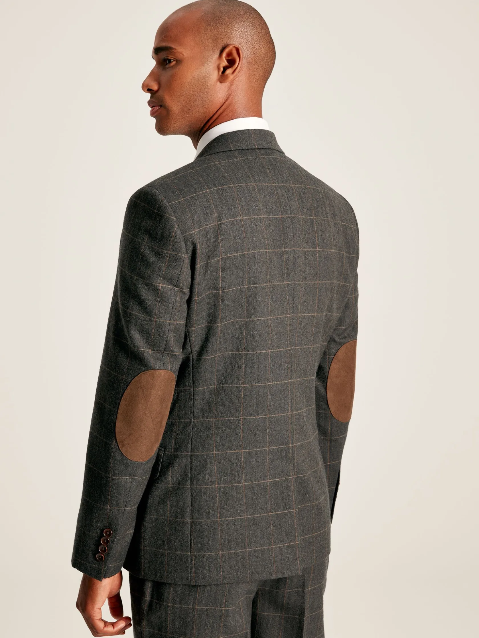 Stand out from the crowd in our heritage inspired windowpane check suit jacket. A timeless addition to your wardrobe, this smart jacket is crafted from 100% wool woven in Britain and boasts a classic two button fastening, notch lapel and flap front pockets. The jacket is finished with delightful added details, including elbow patches and a printed lining to elevate your look. Woven at Alfred Brown mill in Yorkshire, Great Britain.