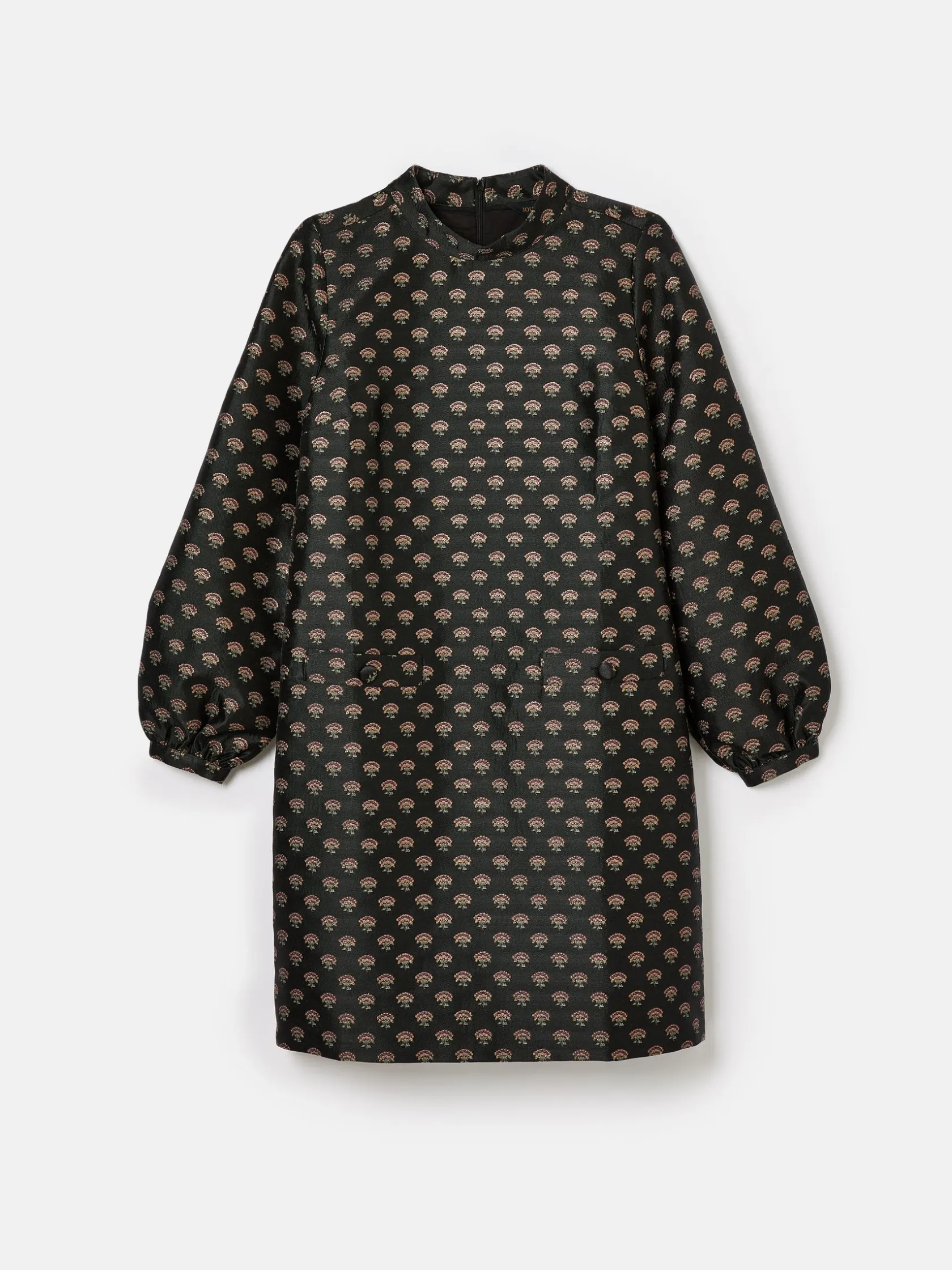 An elegant style with vintage appeal, the Annalise dress will make a special addition to your wardrobe. It’s cut to an a-line shape that goes out from the bust and sits just above the knee. Those vintage details can be seen through the high neck, blouson sleeves with button cuffs and two mock pockets to the front finished with dome buttons. The floral print that adorns the dress has been hand-drawn by our in-house print team, for a statement design you won’t find anywhere else. Dress it up with a pair of heels for occasions, or with boots and tights for a look you can wear during the daytime too. A-line shape. High neck. Blouson sleeves with button cuffs. Two mock pockets to the front with dome button detailing. Hand-drawn print. Zip fastening to the back.