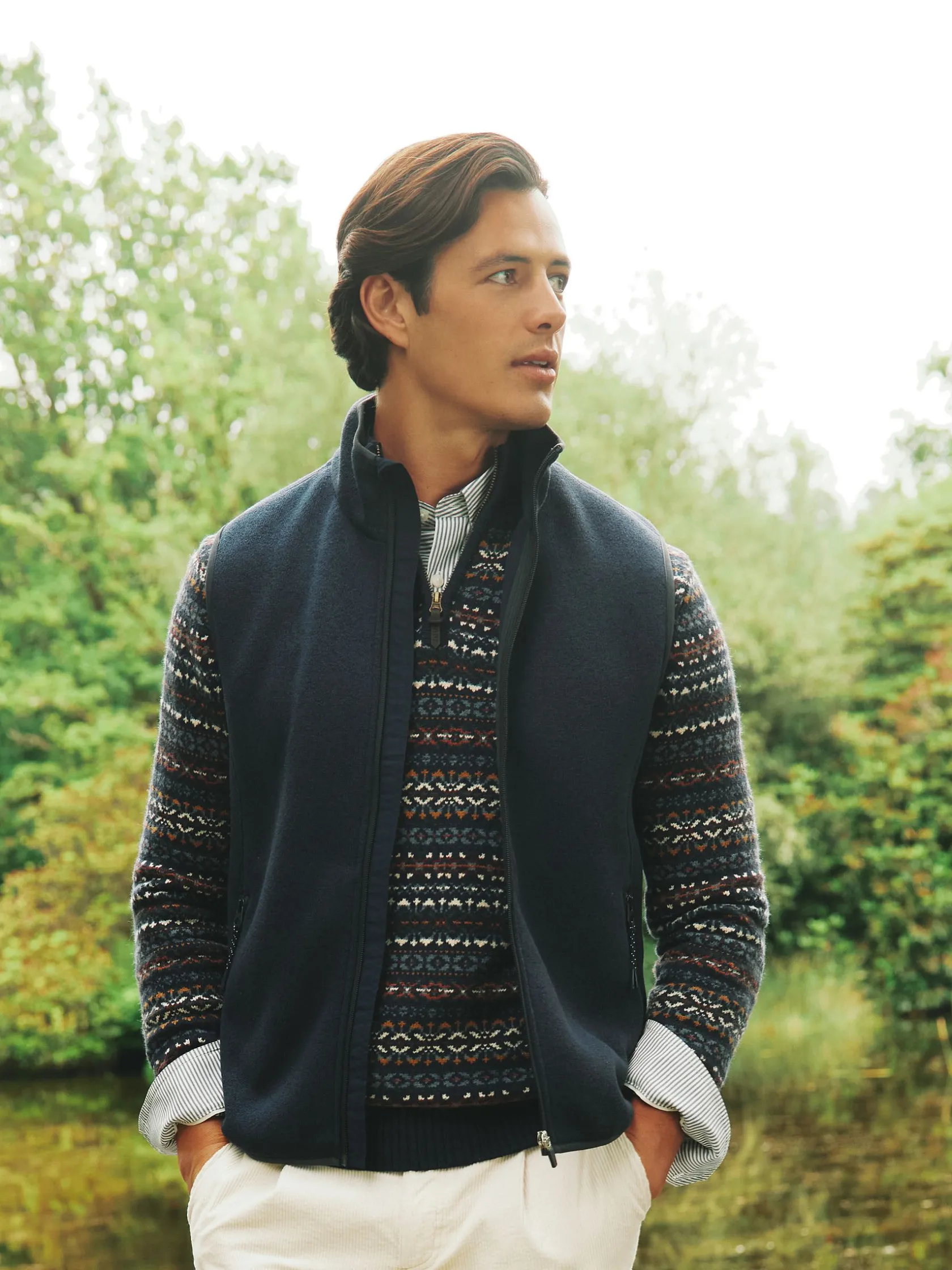 This new fleece will soon become a trusted companion. Raking leaves in the autumn, watching the rugby or strolling to the pub on a chilly afternoon. It can be pulled on over anything – a shirt, jumper, t-shirt – and it can even be used as an extra layer of warmth under a jacket or coat. The funnel neck and handy zip pockets are super-practical whilst embroidery to the back adds style.nnFunnel necknZip fasteningnContrast trimsnEmbroidery to back neck