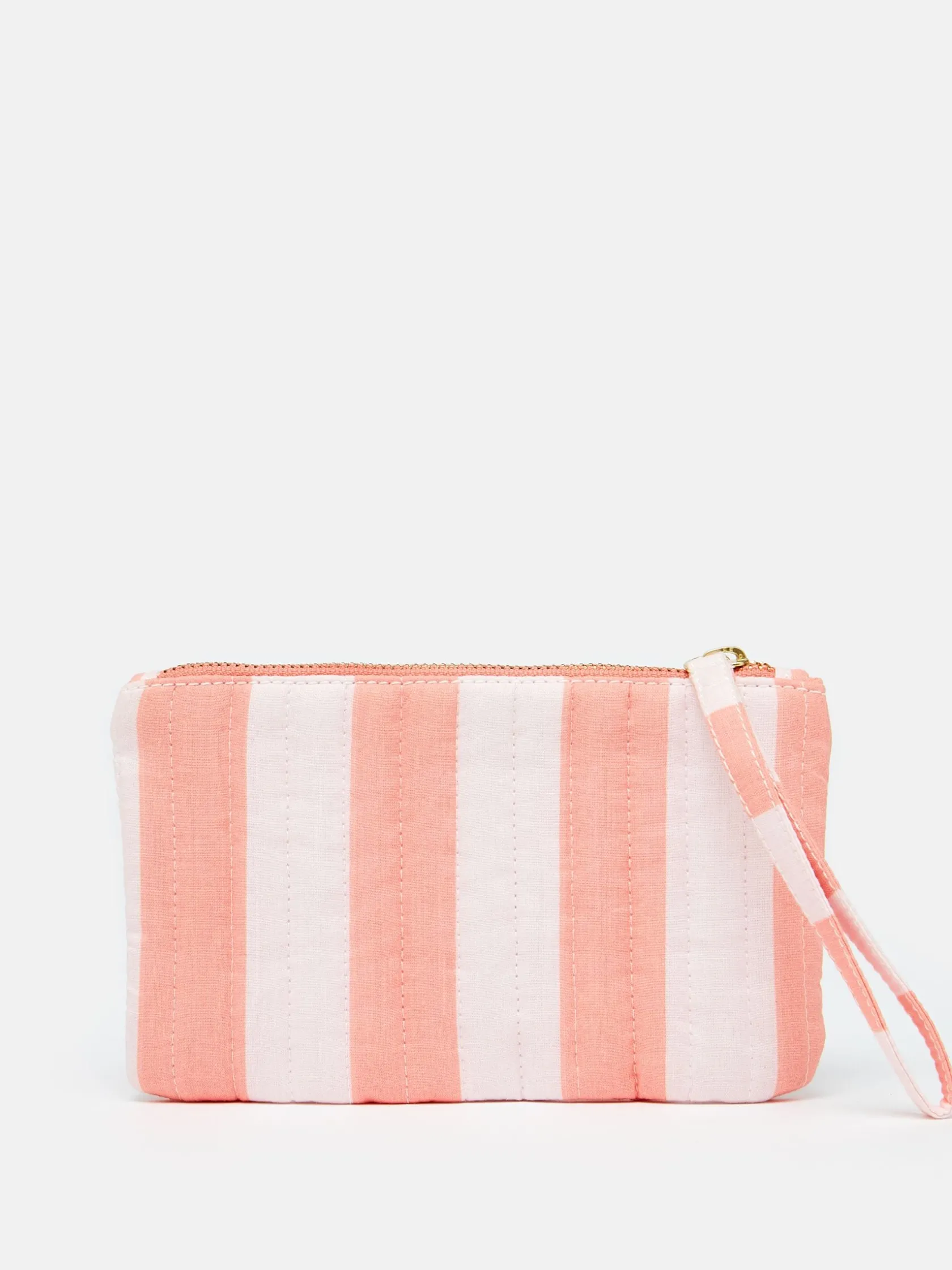 Adorned with bright stripes, the Daphne wristlet pouch makes for the most elegant of accessories. It’s crafted from cotton with a quilted, padded outer. It fastens with a metal zip, has a slimline wrist strap and an internal slip-in pocket. The bright colour palette is sure to make quite the statement no matter how you choose to style it and the branded label to the front nods to your favourite brand. Bring a little joy to someone you love and give this as a gift. It’ll certainly go down a treat. Cotton padded outer. Wristlet strap. Metal zip fastening. Striped. Joules branded tab to the front.
