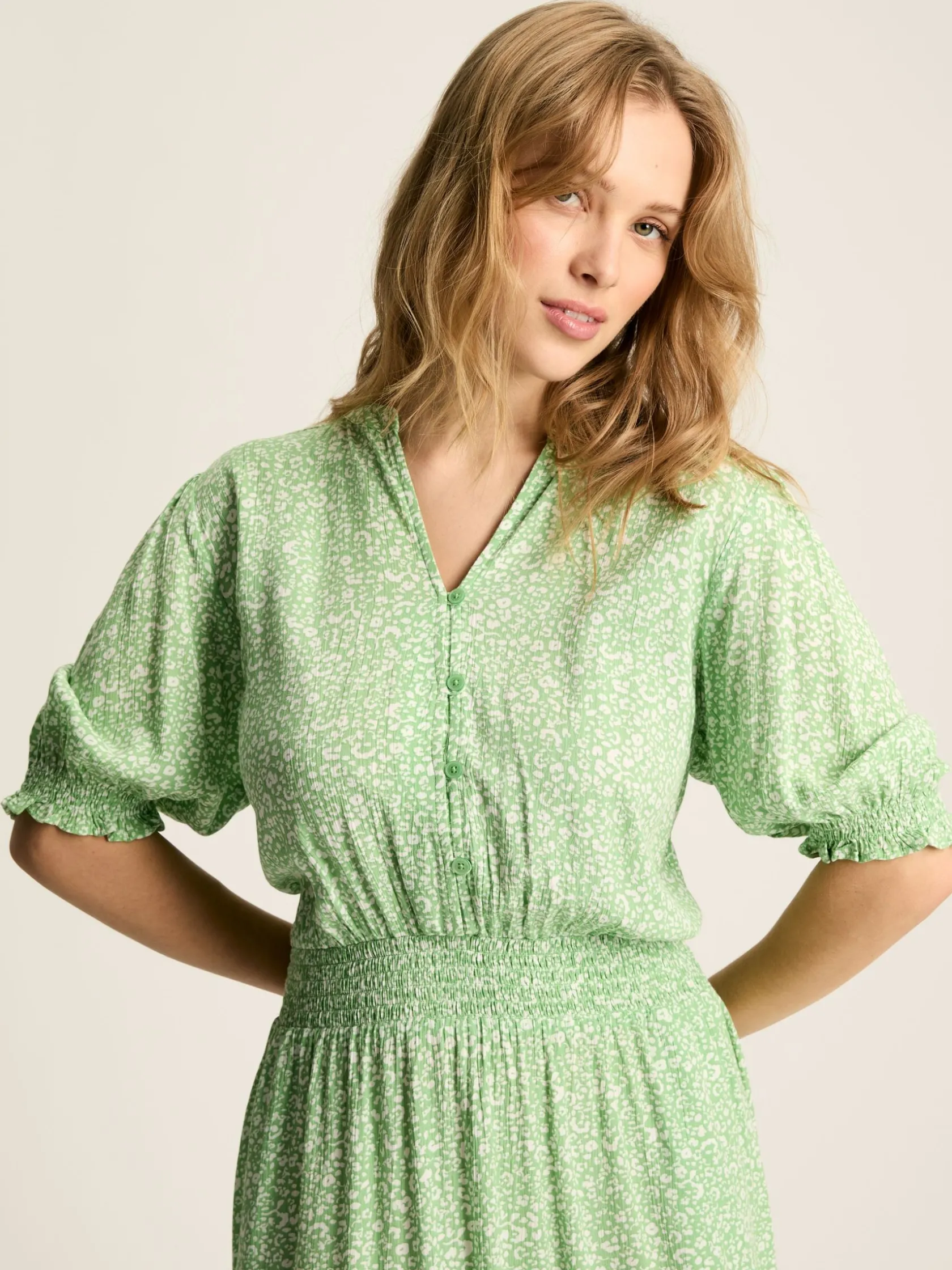 If you’re refreshing your warm weather wardrobe, save a space for the Laurie dress. Designed for summer, it’s crafted from 100% Livaeco by Birla Cellulose viscose which gives it a beautiful lightweight and floaty feel. It’s cinched with a shirred waistband before falling to a midaxi length, has short sleeves with frilled elasticated cuffs and has four button fastenings to the bodice. The notch neck is effortlessly flattering and the hand-drawn ditsy print that adorns the dress complements the season. 100% Livaeco by Birla Cellulose viscose. Livaeco by Birla Cellulose fibres are derived from certified sustainable wood sources, have lower water consumption and can be traced to their origin. Midaxi length. Short sleeves with elasticated frilled cuffs. Notch neck. Button fastenings to the bodice. Shirred waistband. Hand-drawn ditsy print