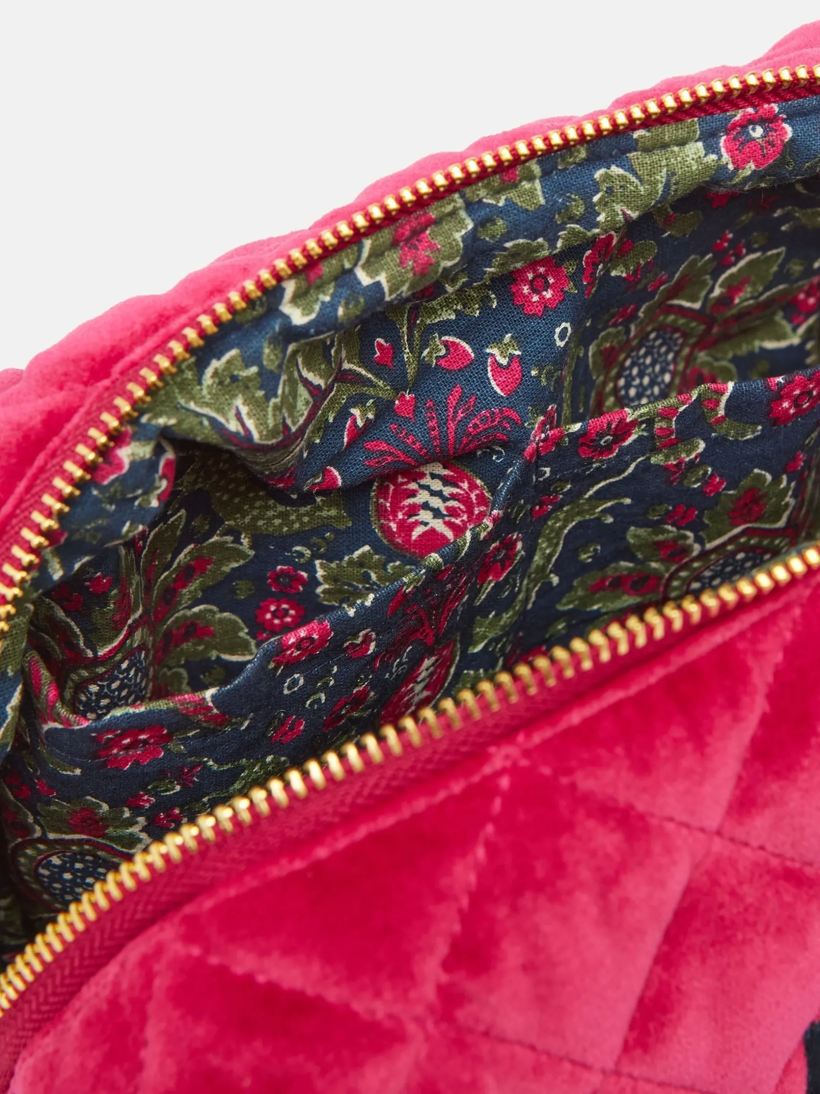 The Lillia wash bag is sure to be top of the gift lists this season. Its quilted outer adds a touch of luxury and comes in an opulent paisley print or two velvet styles to choose from. It fastens with a metal zip, has two internal slip-in pockets and a gold-look Joules branded tab to the front. Quilted and padded outer. Metal zip fastening. Two internal slip-in pockets. Joules branded tab to the front. Dimensions: 23cm x 15cm