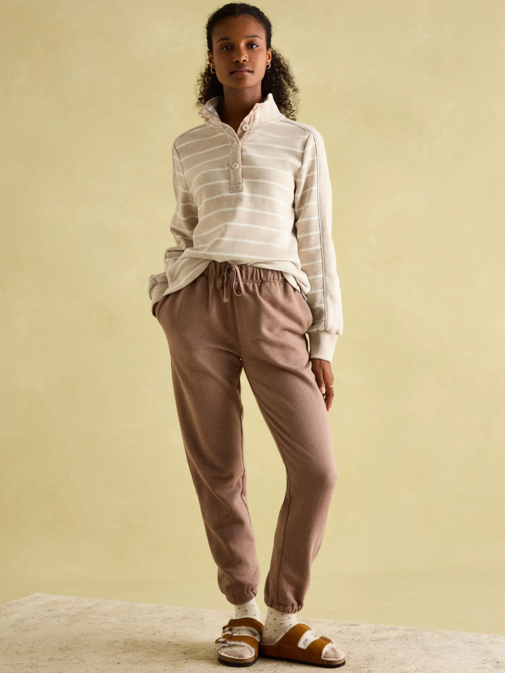 Elevated for the new season, our Southwold sweatshirt was inspired by coastal strolls (as the name suggests!). It’s crafted from hardwearing jersey, and has a funnel neck and button placket, with a contrasting stripe to the inside neck and a Joules emblem to the front as an unmistakable mark of quality. The striking stripe pattern continues onto half of the sleeves for an eye-catchingly stylish look. Jersey sweatshirt. Stripe design. Funnel neck with button placket. Joules embroidery to back neck and sleeve