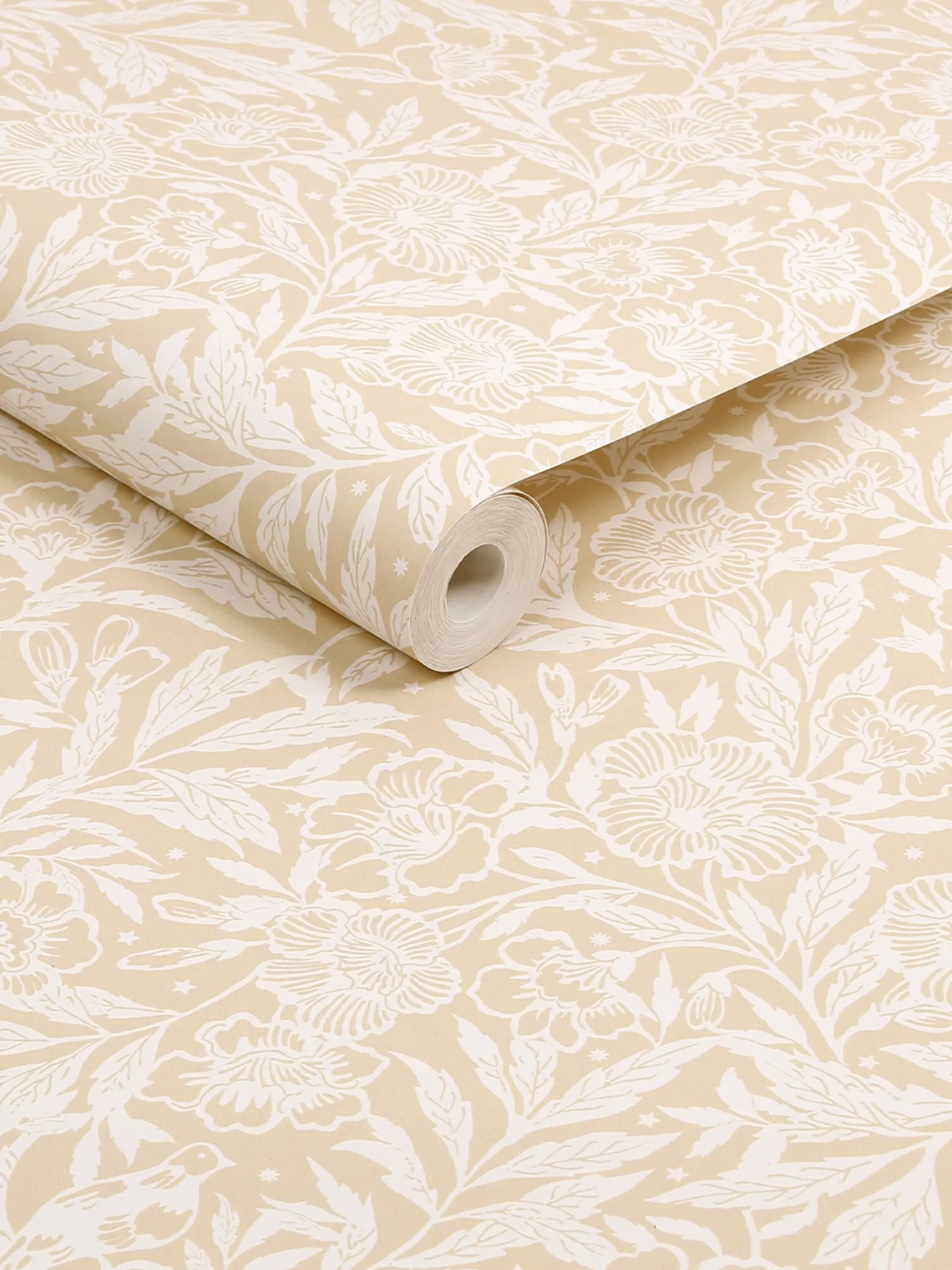 Bring classic arts and crafts style to your home, along with a touch of the British countryside. This wallpaper teams floral blooms and foliage with hidden birds perched upon branches, leaping hares and foxes surrounded by delicate stars. The more you look, the more you’ll see. This beautiful design has a large repeat for impactful scale and is printed on a matt substrate for a contemporary look and feel. This wallpaper is also paste-the-wall, making it easy to hang.