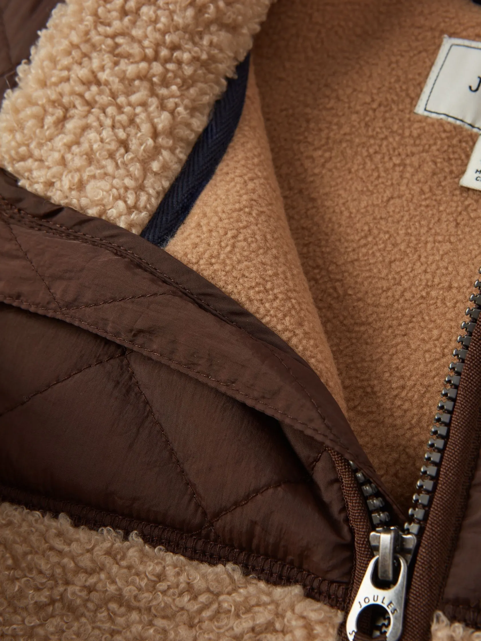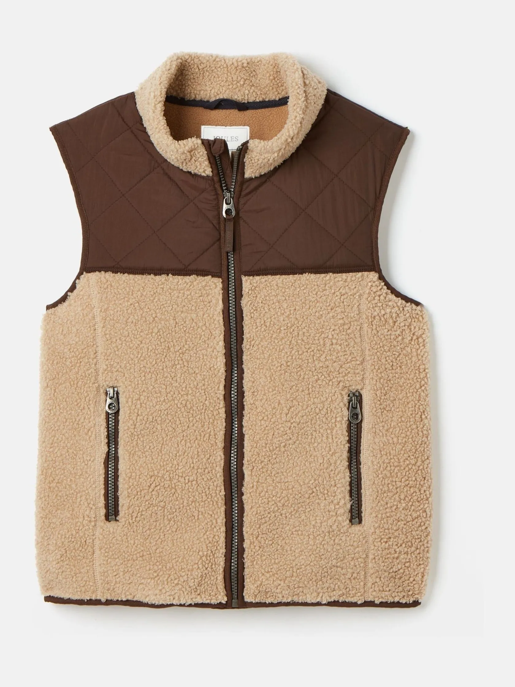 New Joules Boys’ Eddington Natural & Brown Colourblock Fleece Gilet Natural&Brown
