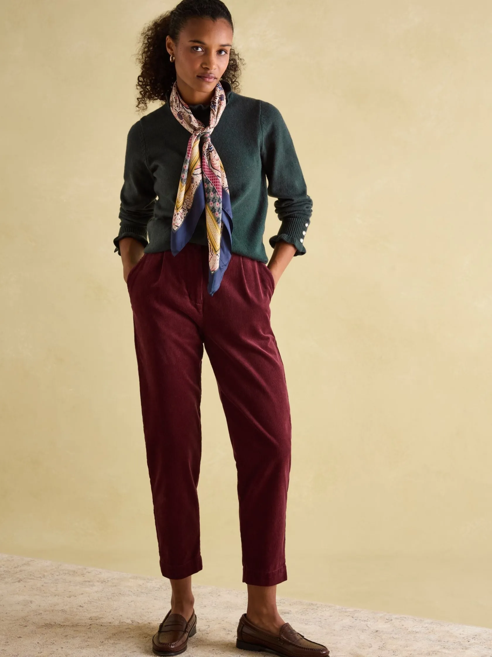Keep it neutral with the Edith frill neck jumper. The perfect knit to have in your wardrobe all year round, it has long, slim-fitting sleeves with ribbed frilled cuffs, a high neck with frilled trim and a ribbed hem. For added detail, there are three metal buttons on the cuffs. Layer under blazers in colder weather or wear by itself when spring and summer arrive. Cotton blend. Slim-fitting sleeves. Frilled ribbed cuffs. Three buttons to each cuff. High neck with frill. Ribbed hem
