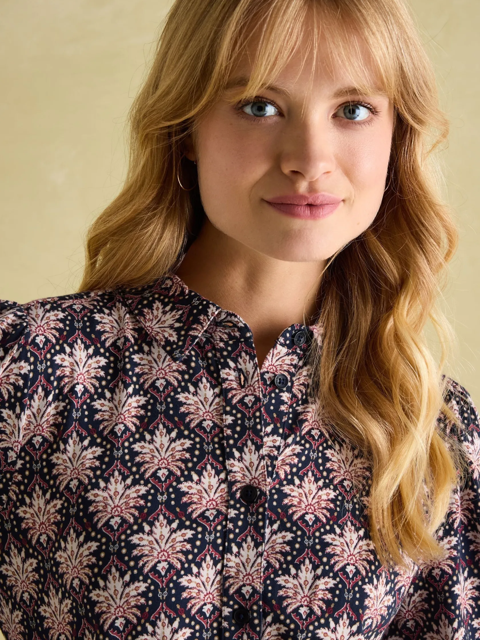 Easy-to-wear while remaining elegant and stylish, the Hazel dress is perfect for the autumn and winter season. It features a unique hand-drawn print and uses an opulent colour palette. The cotton jersey fabric makes it beautifully soft, while the midi length allows you to pair it with all kinds of footwear. A shirred waistband gives it a flattering cinch at the waist and a button placket lends itself to layering in the colder weather. Finished with pockets in the side seams! Cotton jersey blend. Midi length. Long sleeves with gathered shoulders. Button placket. Collar. Shirred waistband. Pockets in the side seams.