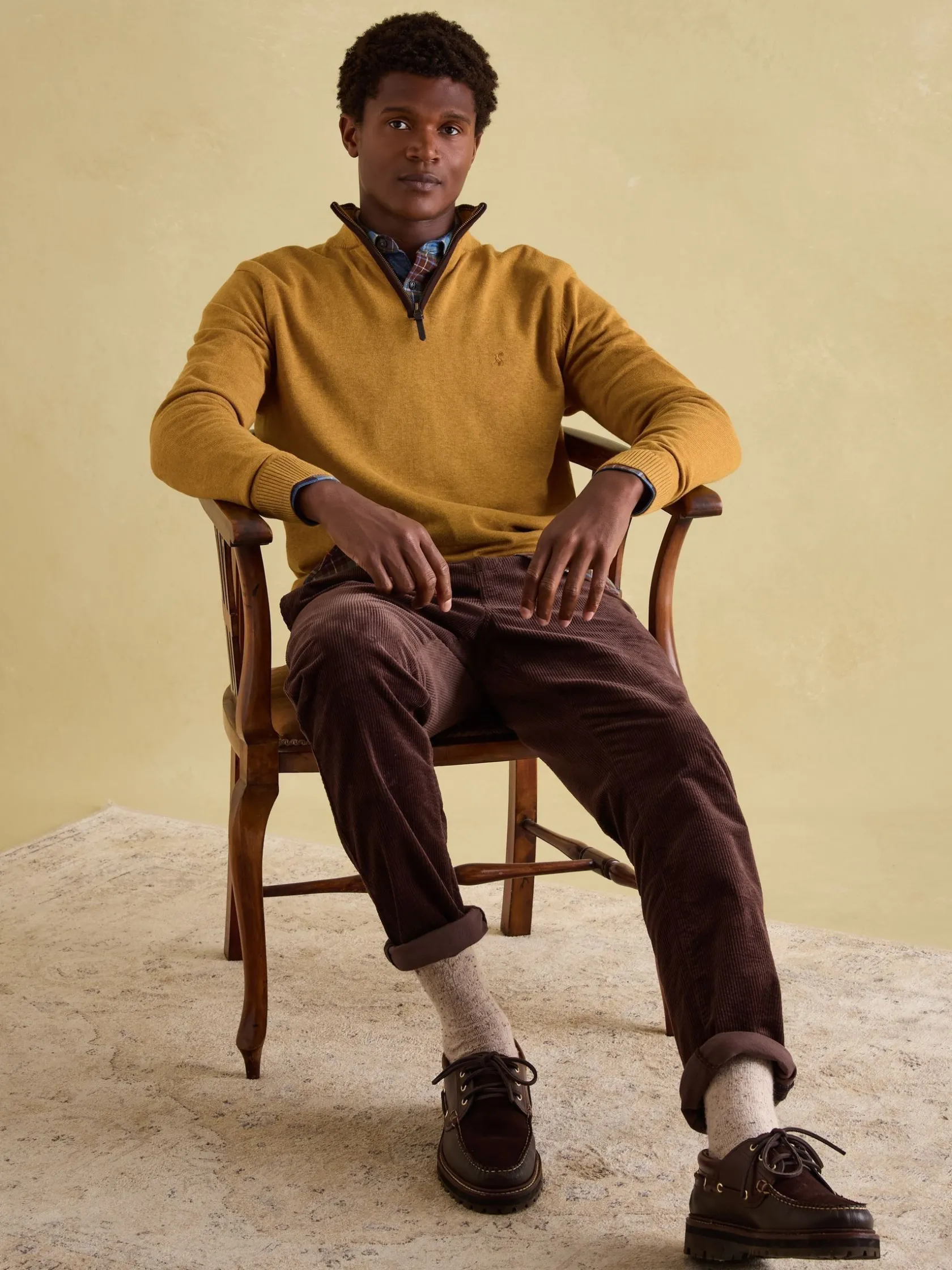 New Joules Hillside Dark Yellow Quarter Zip Knit Jumper DarkYellow