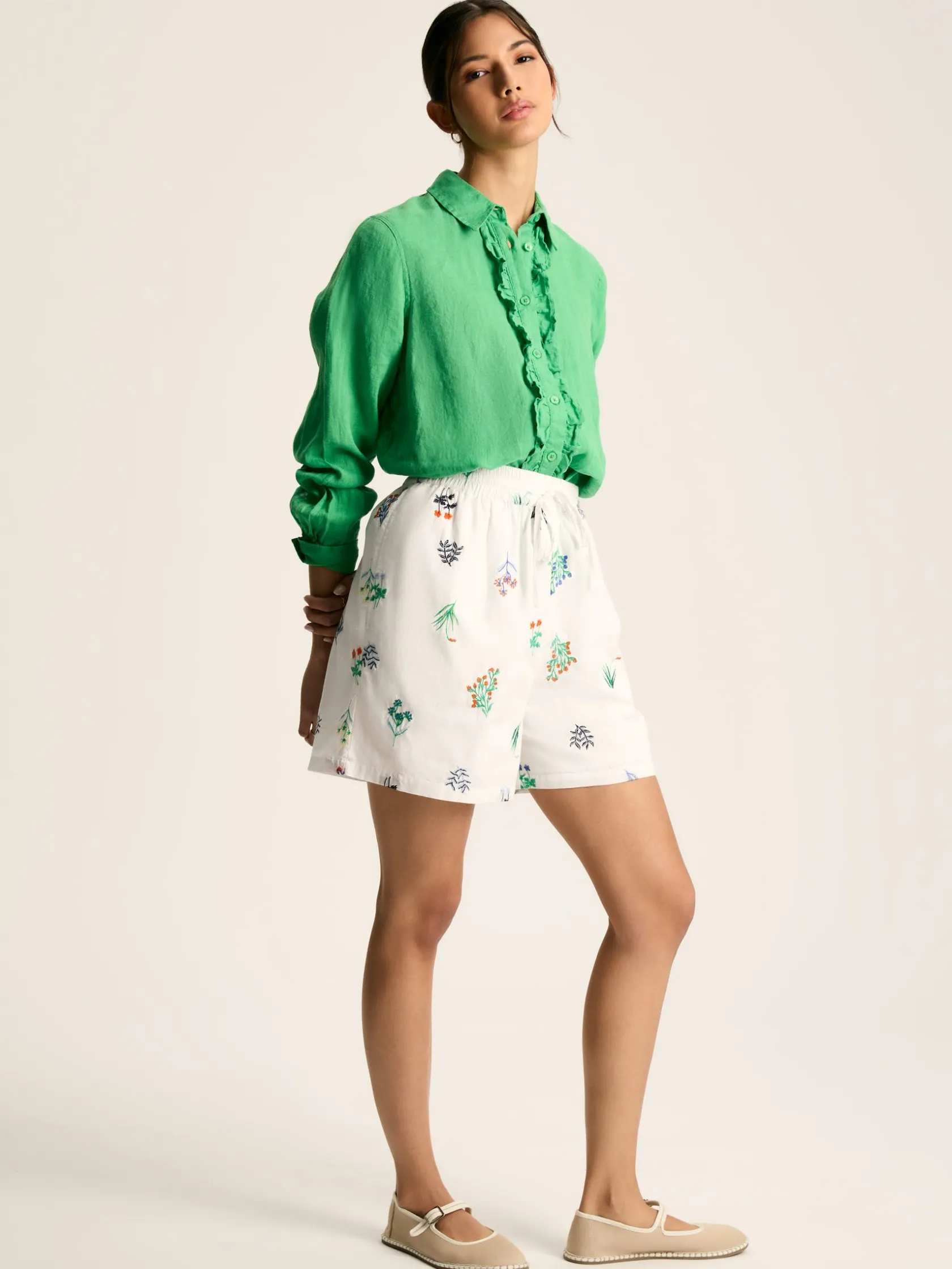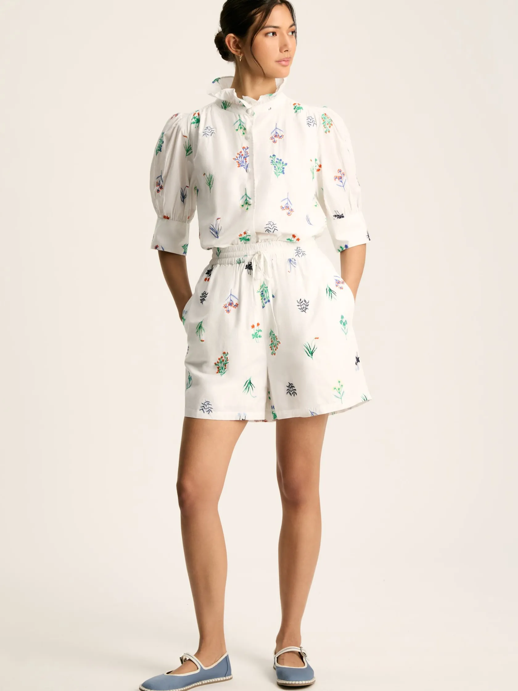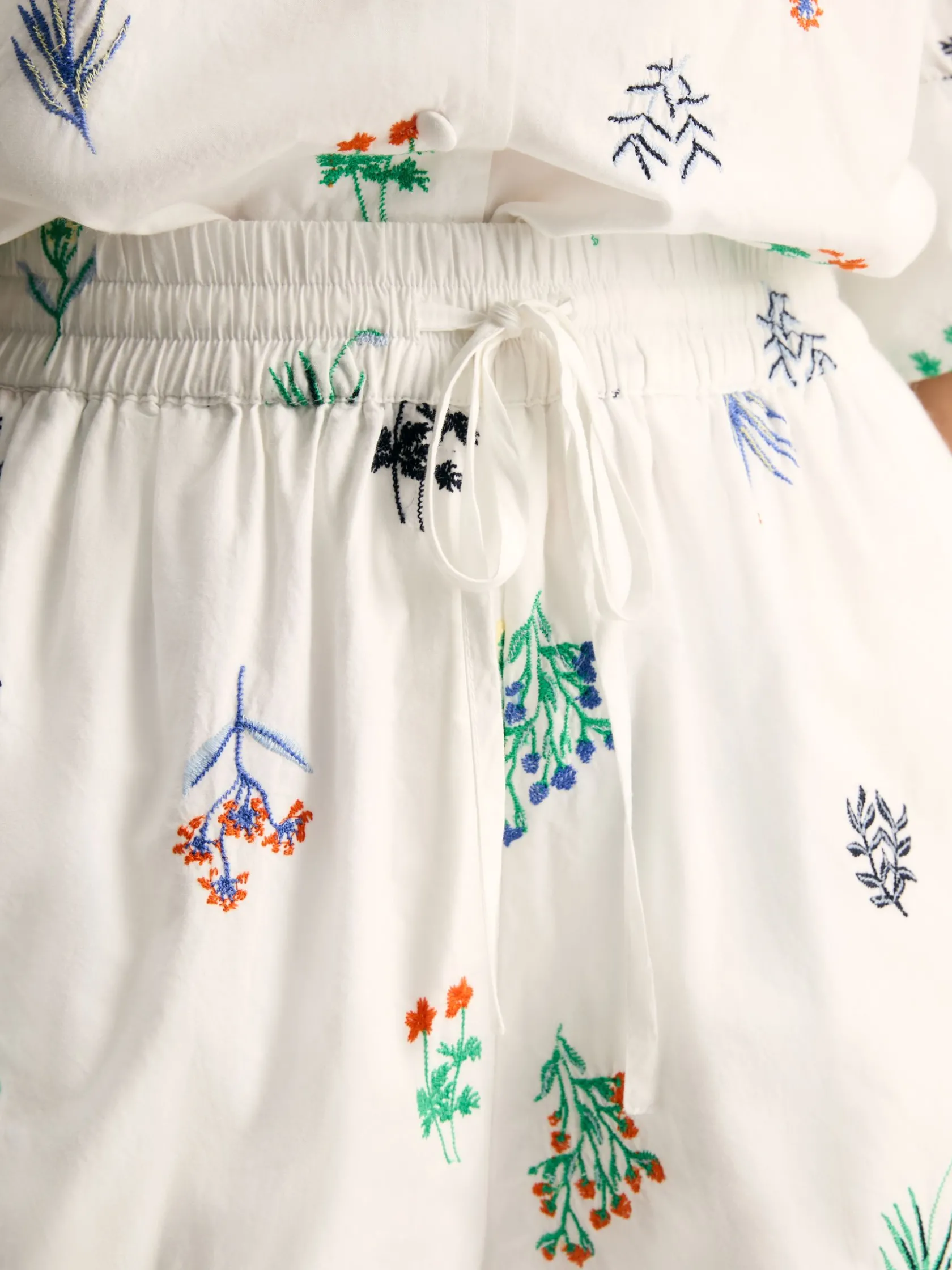 Get ready to receive compliment after compliment every time you step out in the Iris shorts. Ornate embroidered blooms in a medley of bright colours and the crisp white cotton fabric makes these shorts a real statement style for the summer months. They sit high on the waist with an elasticated waistband and drawcords, are cut to an elegant a-line shape, feature pockets in the side seams and are fully lined to ensure a comfortable wear. Designed as part of a co-ord, investing in the matching Iris blouse will allow you to create the ultimate warm weather outfit that will be a forever favourite. 100% cotton. Fully lined. A-line shape. High rise waist with elasticated waistband and drawcords. Pockets in the side seams. Intricate embroidered blooms to the front and back. Part of a co-ord set (shop the matching Iris blouse)