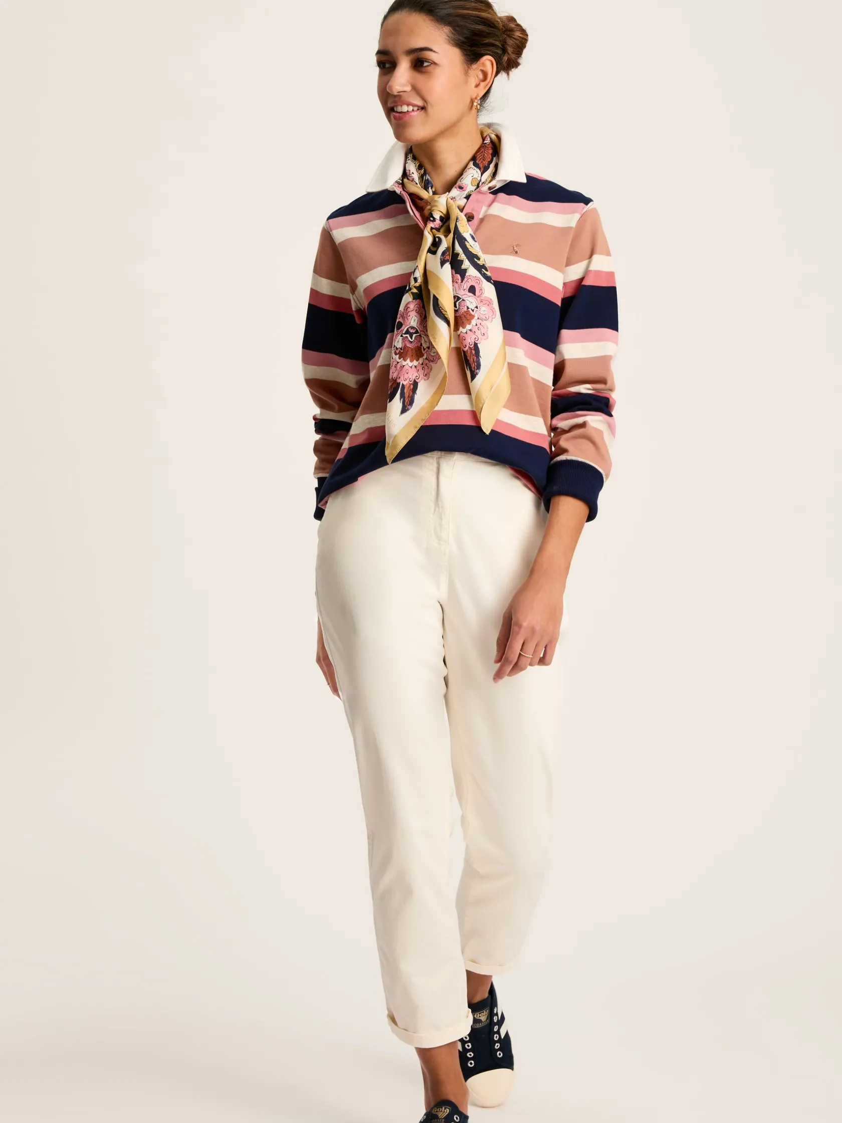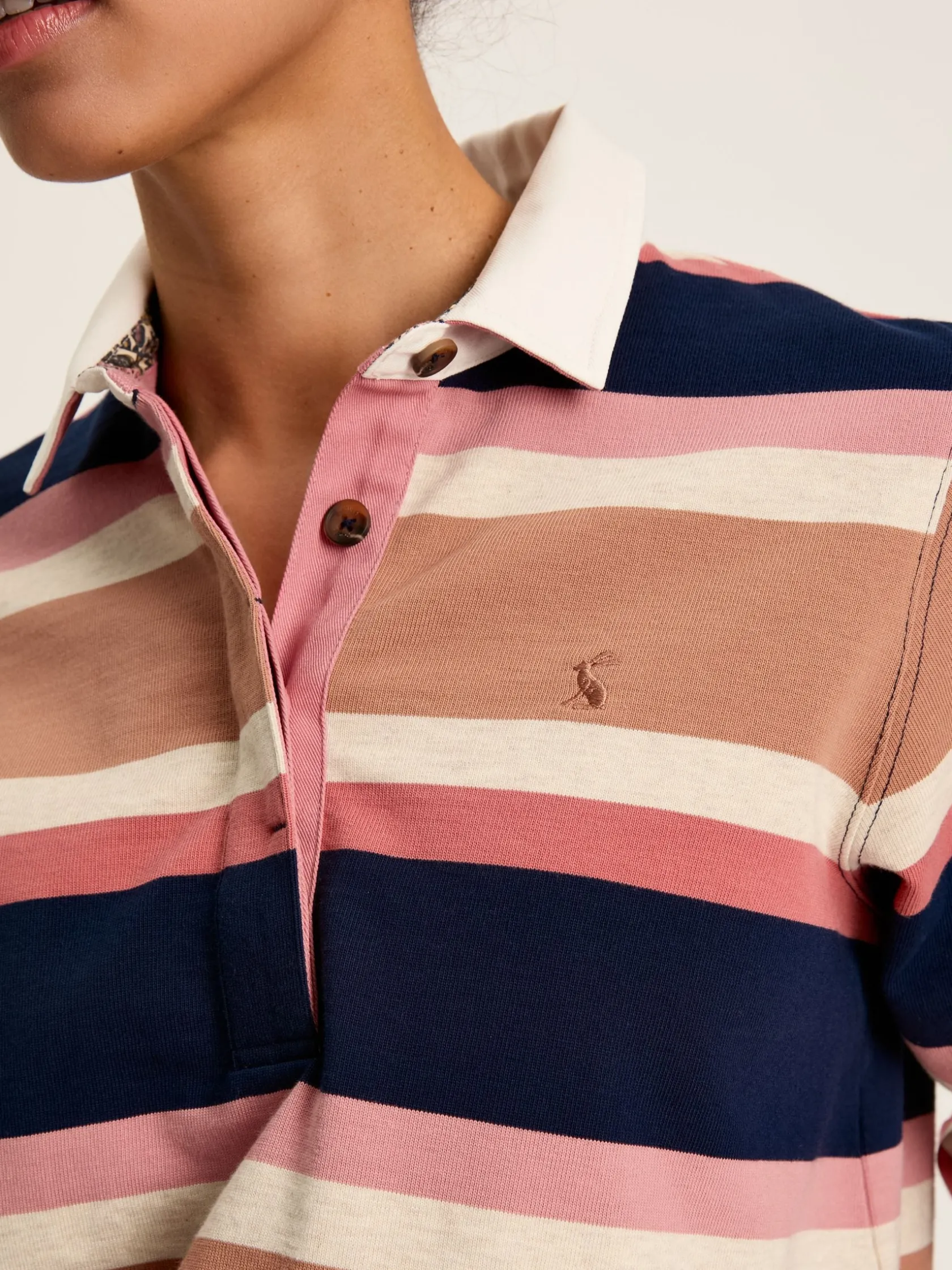 New Joules Sammie Tan Multi Stripe Striped Heavyweight Cotton Rugby Shirt TanMultiStripe