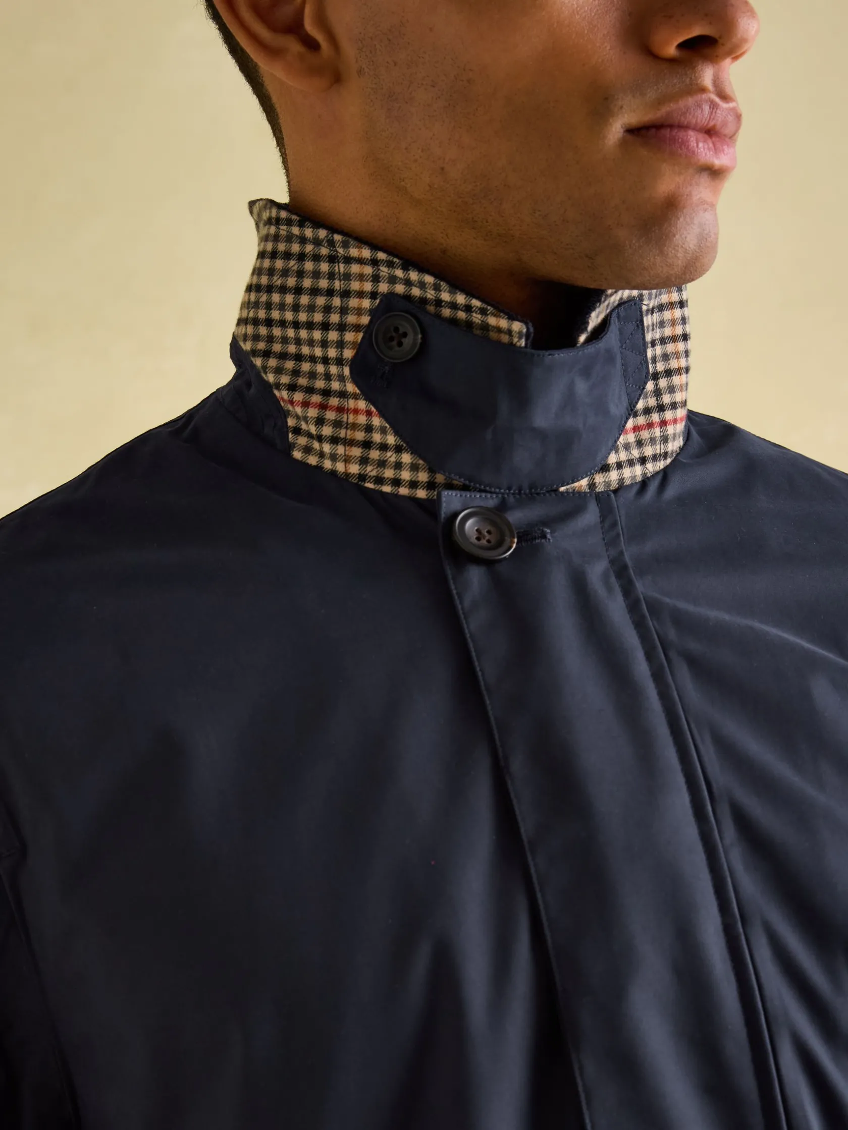The Sandford is the kind of coat that will keep you dry while allowing you to maintain a smart casual appearance. With a straight fit through the body and a concealed button fastening, it has a clean, unfussy look that will withstand the test of time. It’s waterproof with taped seams, has adjustable cuffs for the perfect fit and a back vent for freer movement. Well considered details such as the breathable eyelets under the arms, the corduroy collar, side pockets with corduroy trims and a checked lining are all a testament to its quality. This is a coat you’ll rely on forever. Waterproof with taped seams. Concealed button placket. Corduroy collar with throat latch detail. Adjustable cuffs with button fastenings. Checked lining. Side pockets with corduroy trim. Back vent. Breathable eyelets under the arms. Internal pocket