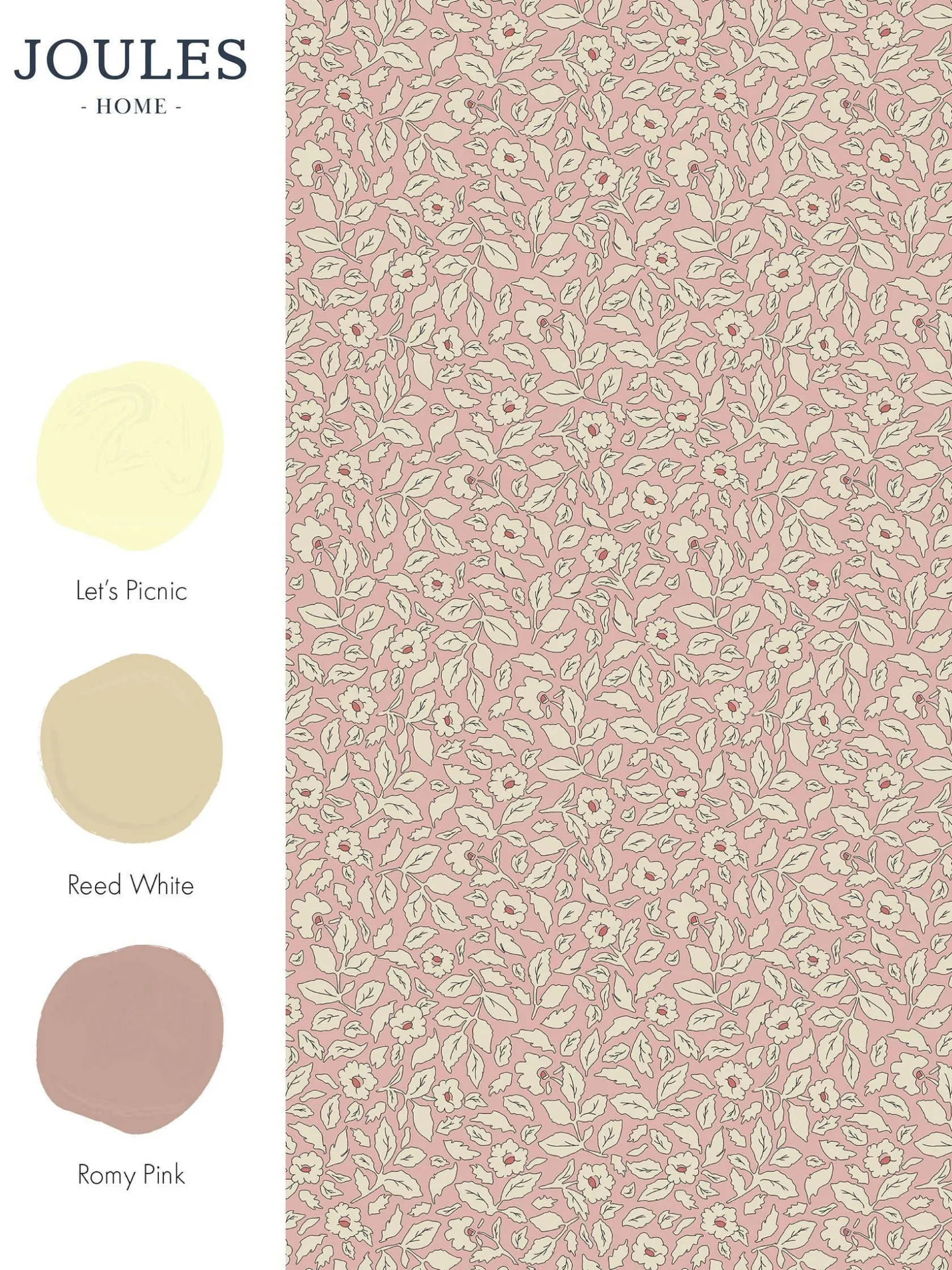 New Joules Soft Pink Ditsy Floral Print 10M Wallpaper SoftPink