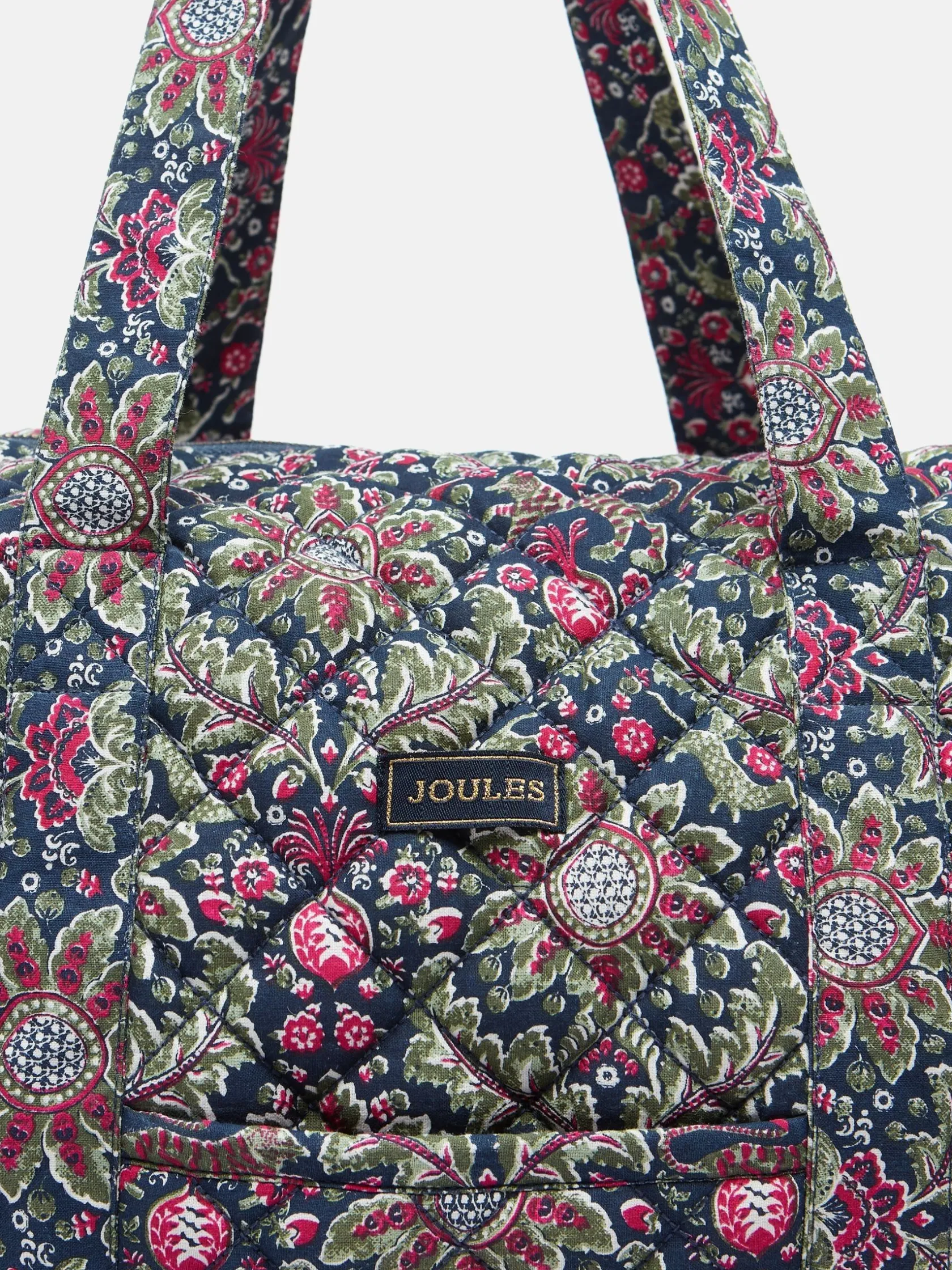 Designed for short trips and getaways, the Dolly weekend bag is a travel companion you can always rely on. It’s adorned with a paisley print which incorporates an opulent colour palette sure to make quite the statement. As well as looking good, it’s functional too with enough room for everything you might need. The carry handles are long enough to be worn on the shoulders or as a holdall and the front slip-in pocket is perfect for easy-to-reach items. Inside there’s two additional slip in elasticated pockets for keeping things organised and it all fastens with a metal zip. It’s finished with a gold-look branded label to the front. Bring a little joy to someone you love and give this as a gift. It’ll certainly go down a treat. Quilted. Carry handles. Metal zip fastening. Front slip-in pocket. Two internal elasticated slip-in pockets. Hand-drawn print. Dimensions: 48cm x 28. 5cm x 22cm. Handle drop length: 31cm