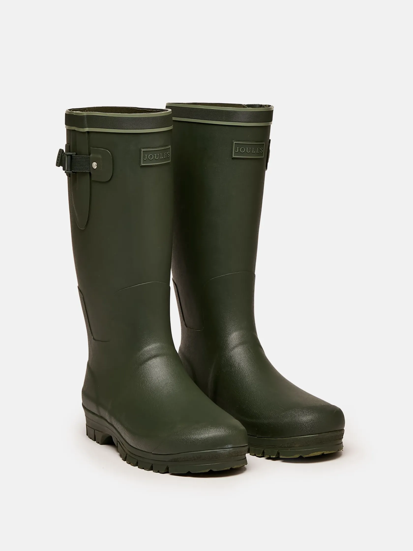 Get stuck into country life with the Eckland tall-height Wellington boots. Designed to withstand all of your outdoor pursuits, they are made from hardwearing rubber and have a waterproof neoprene lining. Their sturdy cleated outsole disperses water and mud away from the foot allowing for better contact with the ground on uneven terrain. As for a matter of practicality, they have a raised toe cap, a gusset with an adjustable clasp for a tailored fit, removable insoles for easy cleaning and a kick-off tab to the heel. The heritage colour palette used ensures they can be easily integrated into your existing country attire, while the rubber Joules tab to the front is a branded touch. Rubber. Tall height (sit just below the knee). Gusset with an adjustable clasp. Water dispersing outsole. Deep cleats for better grip. Kick-off tab to the heel. Toe cap. Removable insoles for easy cleaning. Joules branded tab to the front.