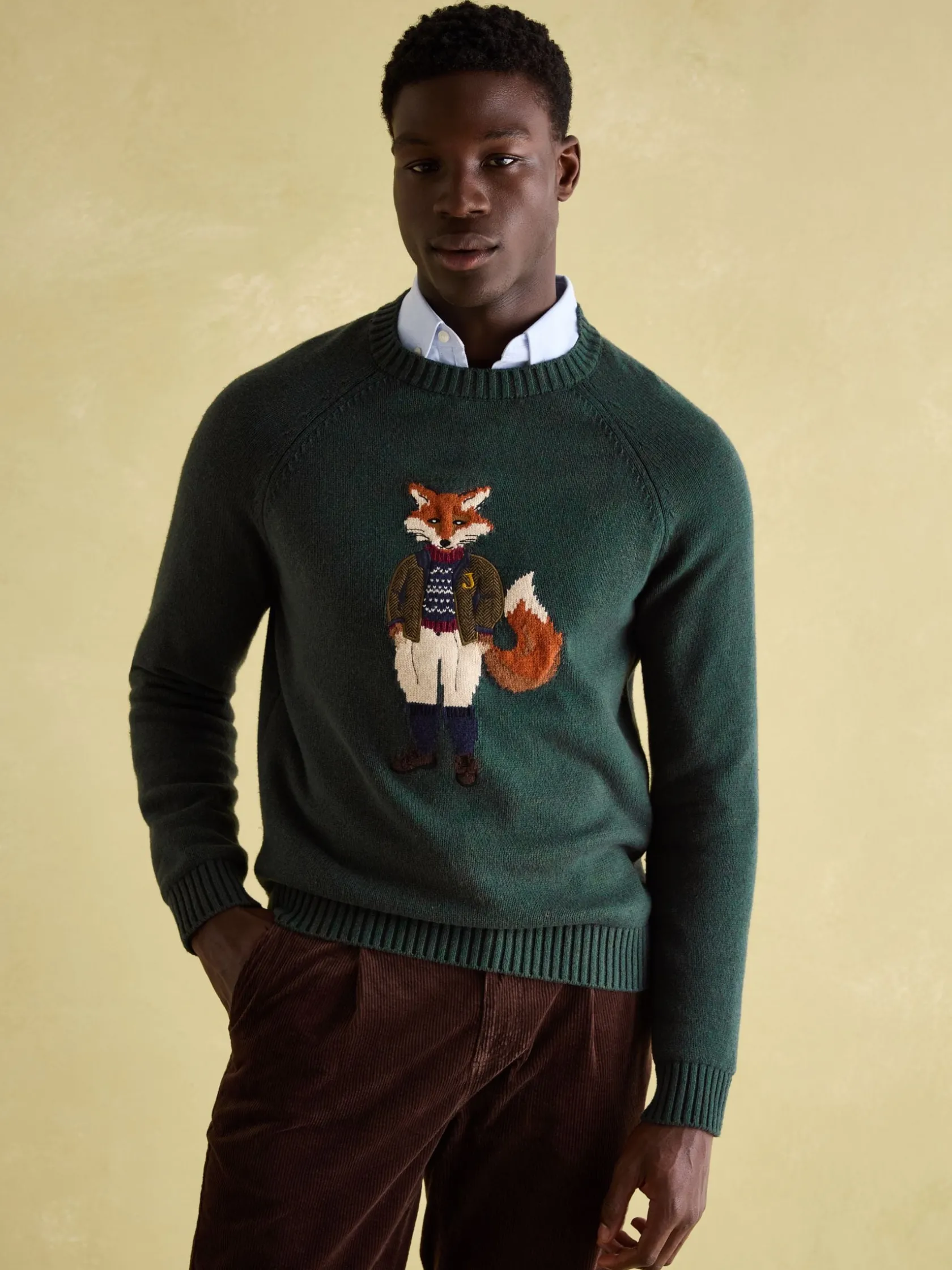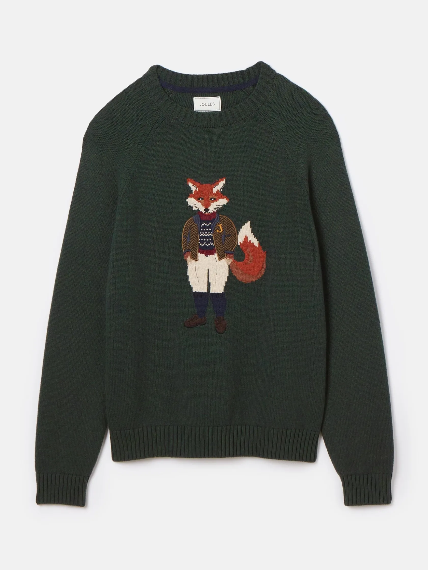 Jonty Fox is set to bring character to your autumn and winter wardrobe. Bright eyed and bushy tailed, this jumper will make quite the statement in your wardrobe. The rather distinguished Jonty is the focal point of the piece and represents the eccentricity of British country style. The well dressed fox is knitted into the jumper while a cutting from a bespoke piece of Joules tweed has been stitched on top to create a beautifully textured finish. The jumper itself has been crafted with care from a quality cotton blend, it has a classic fit through the body and raglan sleeves for supreme comfort. The round neck and ribbed hem and cuffs offers the opportunity to layer almost anything underneath while its heritage colour palette is perfect for the season. Cotton blend. Classic fit. Intarsia fox to the front. Bespoke Joules tweed cut and laid onto the piece. Long raglan sleeves. Round neck. Ribbed hem, neck and cuffs.