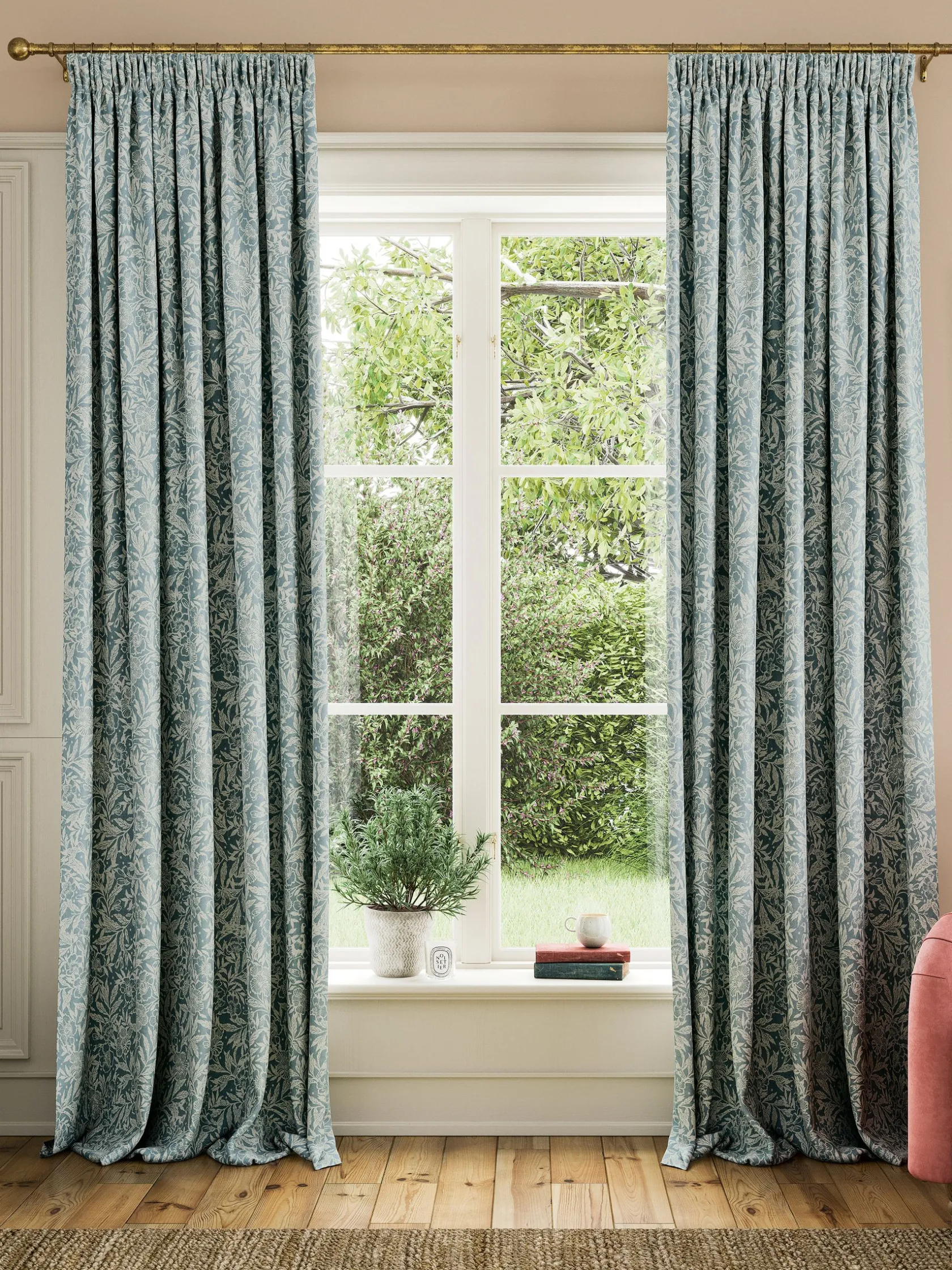 The Twilight Ditsy curtains capture the charm of the British countryside in a high coverage two-toned print that will make your home feel altogether more welcoming and cosy. Lovingly designed to be part of your room for a long time, they’re crafted from quality 100% cotton. They have a traditional six inch pencil pleat header for a neat and uniform finish and come in six sizes to fit a variety of windows. They feature a blackout striped lining which not only ensures your privacy, but also gives the curtains structure allowing them to drape beautifully. 100% cotton. 6″ pencil pleat. Woodland print. Blackout stripe lining. Six sizes available