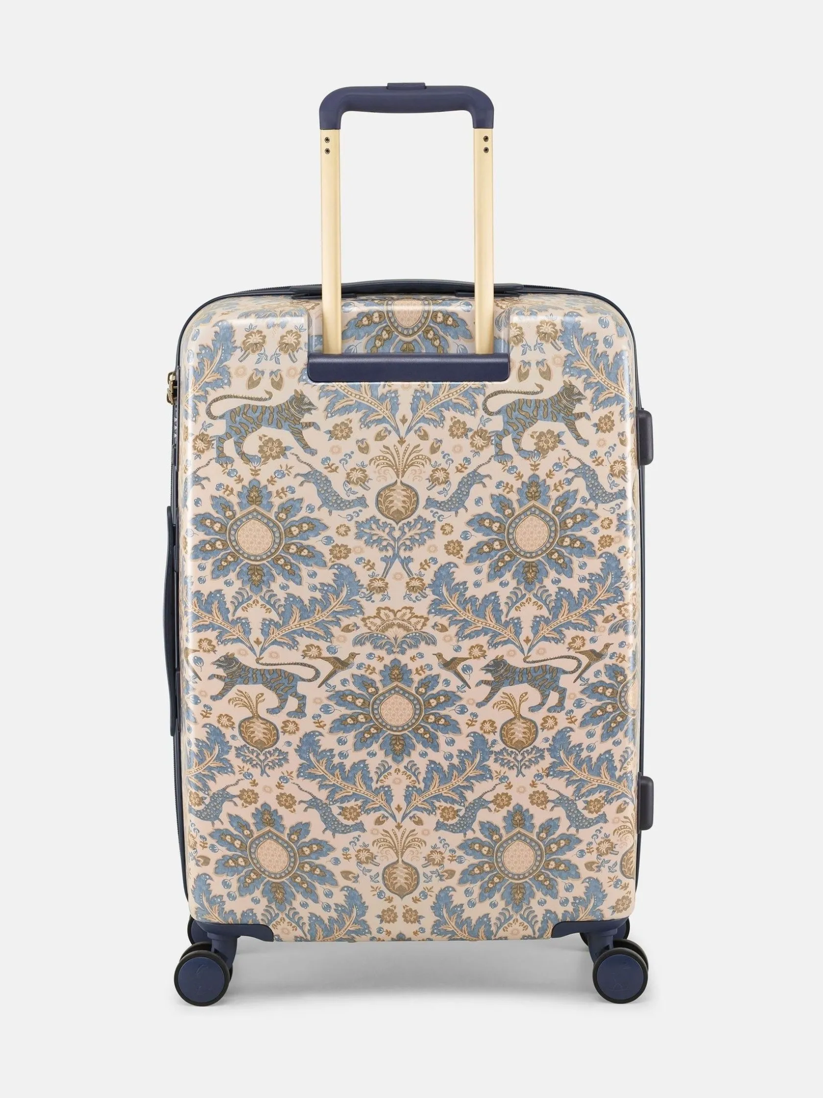 Travel in style with the Joules large-sized suitcase – perfect for long-haul trips to far-flung destinations, or for combining the whole family’s holiday outfits into one case. Its hard shell outer is lightweight, durable and adorned with an elegant damask print which has been hand-drawn by the Joules print team for a truly distinctive look. Its four spinner-wheel design ensures 360° movement and the telescopic trolley handle further enhances its ease of use. To give you full peace of mind when travelling overseas, the TSA-approved lock will ensure all your belongings remain safe. Inside is a haven if your style of packing is of the organised kind. It features two main zipped compartments, one of which has a compression strap for keeping things in place, as well as four additional zipped pockets for smaller items. It’s finished with a striped lining for another unique-to-Joules touch. Part of a four-part luggage collection, you can pick up the matching vanity case, cabin and medium suitcase too. 75.5 x 49.5 x 28cm. Hard shell outer. Lightweight. Fixed carry handle. Telescopic trolley handle with branded push button. Four spinner wheel design for maneuverability. Striped lining. Integrated TSA Lock for secure travel. Two main zipped compartments, with additional zipped pockets for organised packing. Compression straps to one side for compact packing