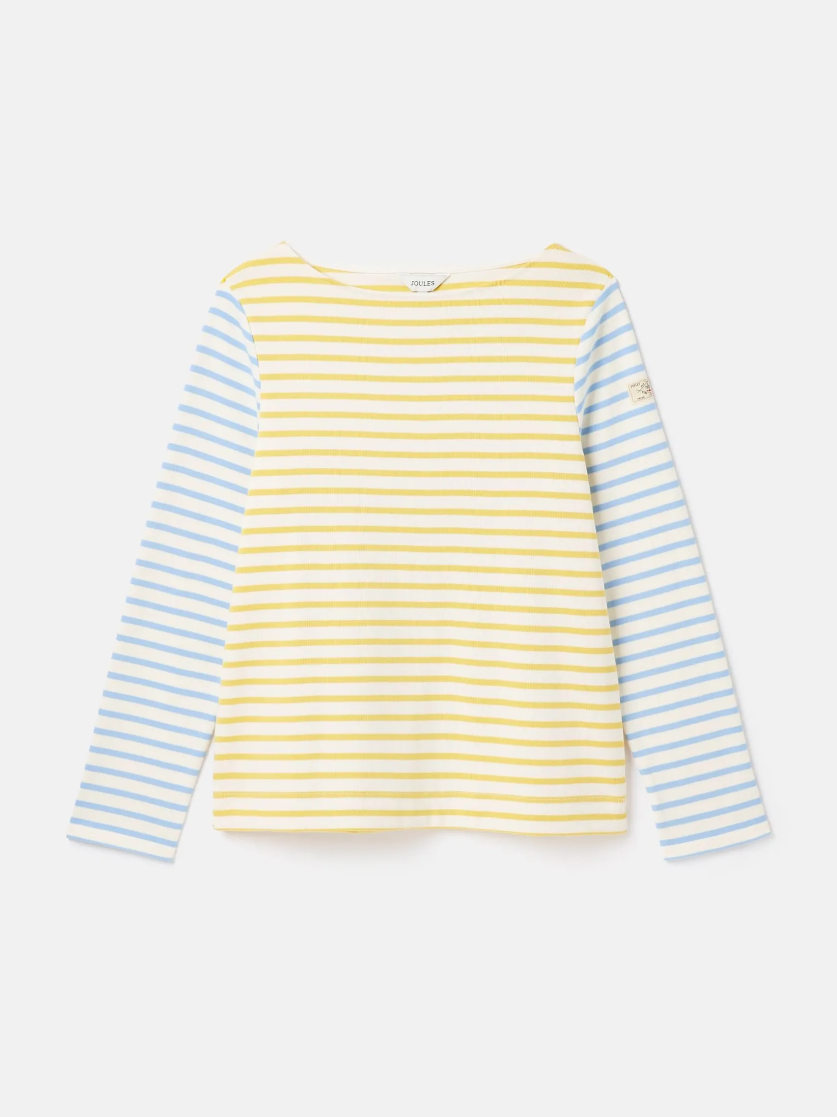 Outlet Joules New Harbour Yellow & Blue Striped Boat Neck Breton Top Yellow&BlueStriped