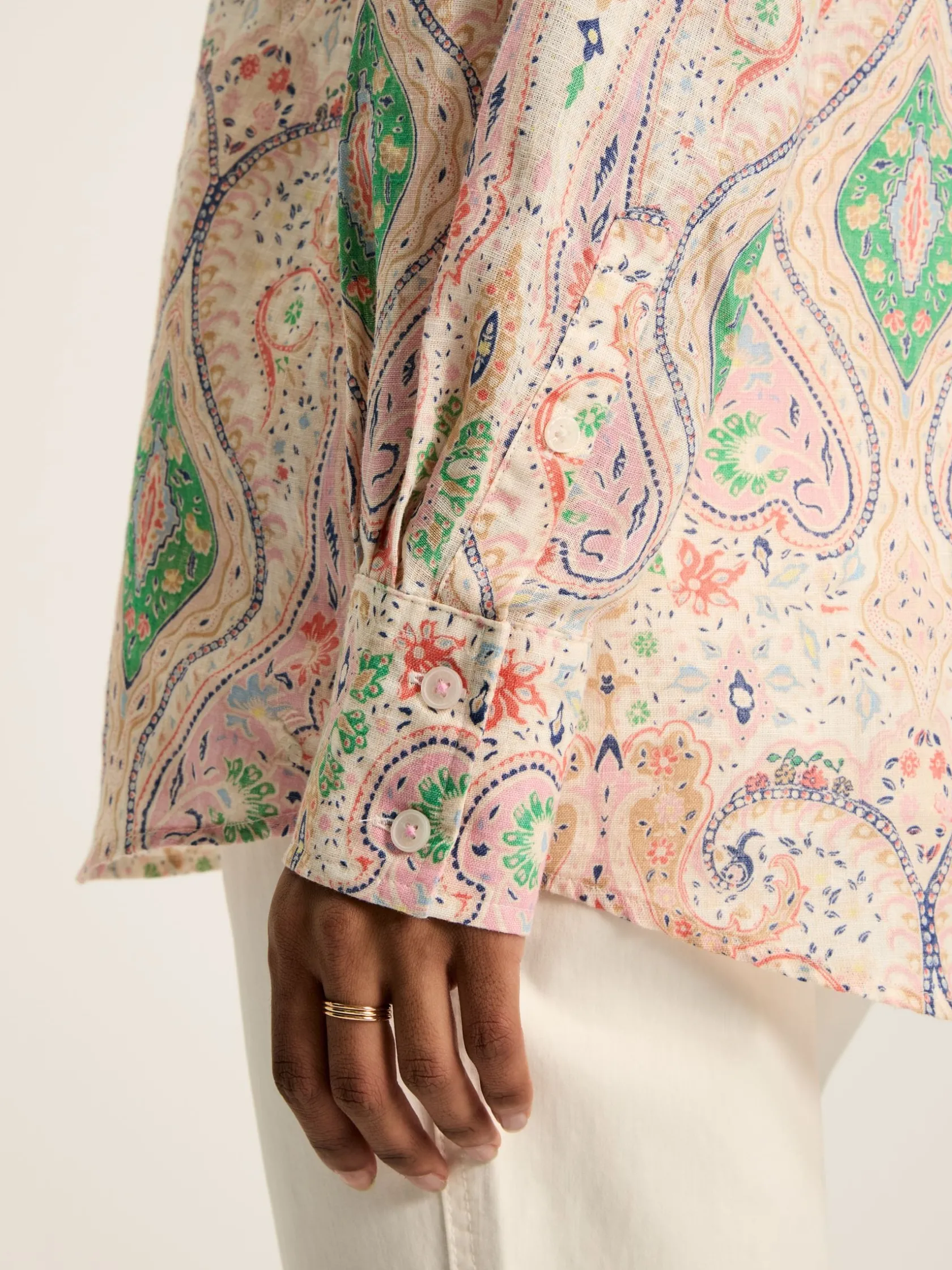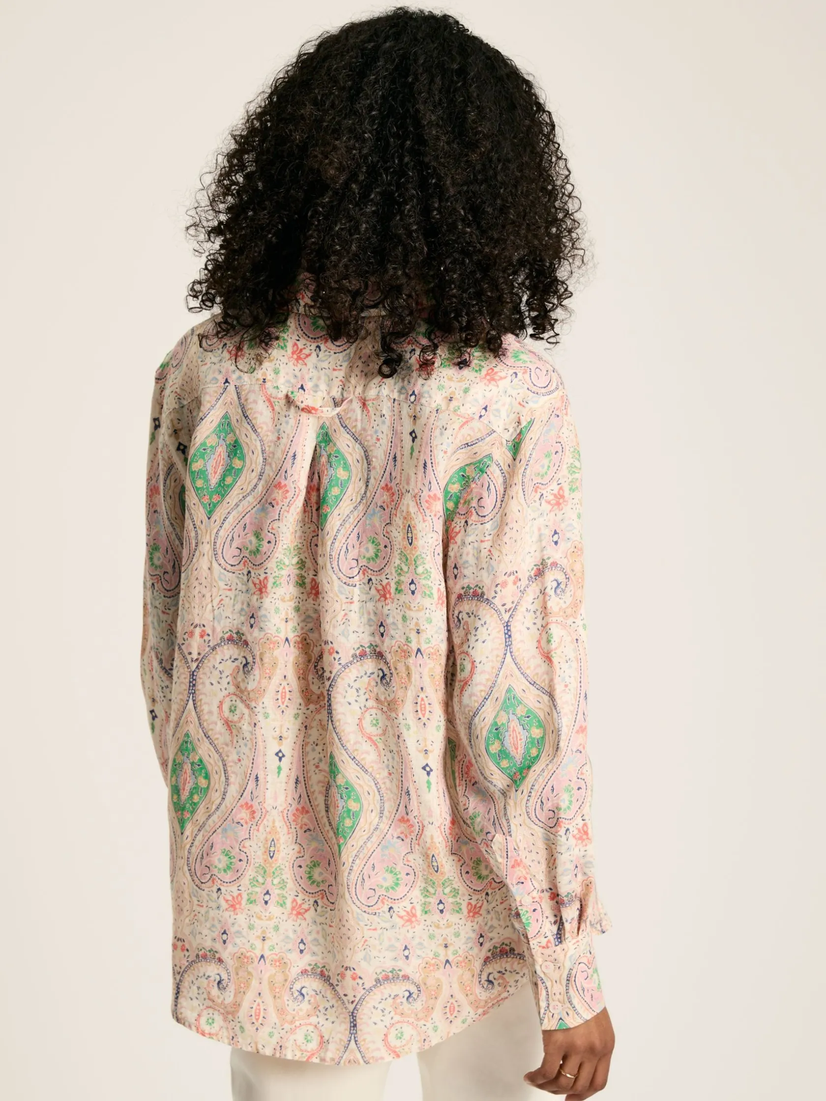 This is our much-loved Amilla shirt, just in a new 100% linen fabric for the summer months. The perfect beach-to-bar piece, it’s lightweight, with a relaxed fit and dropped shoulders making it easy to throw on over swimwear or shorts. The concealed button placket creates a clean, chic finish while the button cuffs allow you to roll the sleeves up to create a laid-back look. It’s finished with a flattering curved hem and a single patch pocket to the chest. 100% linen. Relaxed fit. Dropped shoulders. Curved hem. Button placket. Collar. Button cuffs. Single patch pocket to the chest.