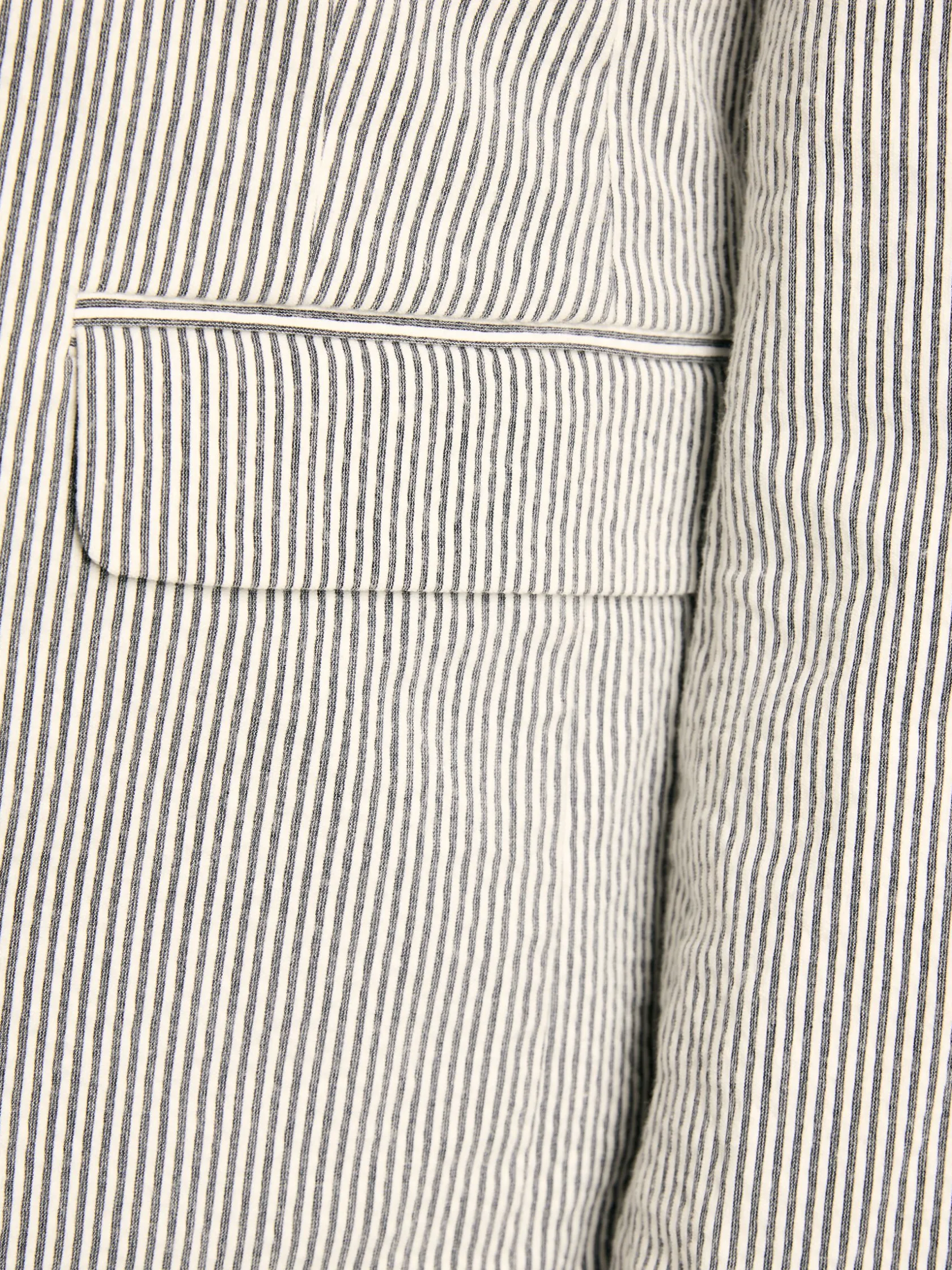 A perfect blazer if you’re looking to add a little preppy style to your look or simply need a smart-casual layer for the warmer days of the year. This piece, crafted from easy-to-care-for cotton seersucker, will look effortlessly stylish when paired with jeans or chinos, although it will looks its best when paired with the matching shorts (we’re loving co-ords this season). Special attention has been paid to the fit, fabric and finish, to make this a worthy investment. nnCotton seersucker – no need to ironnButton fasteningnTwo front pocketsnOne internal pocket with button fastening nMetal hanging chainnPiping detailnButton detail to the cuffsnBack vents