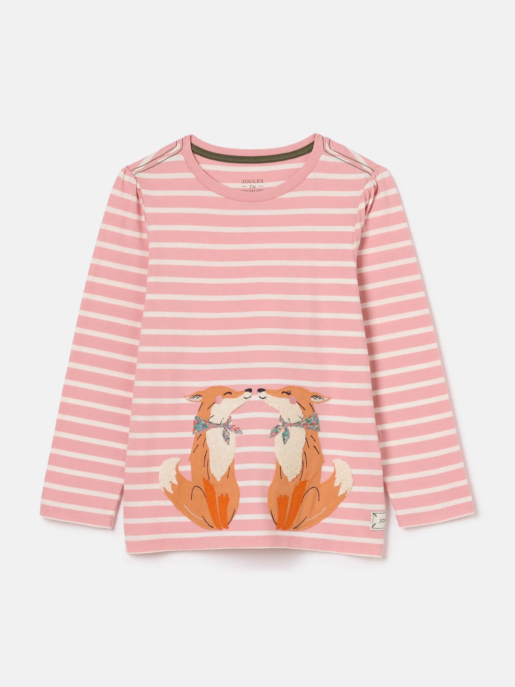 Sale Joules Girls’ Ava Pink Stripe Artwork T-Shirt PinkStripe