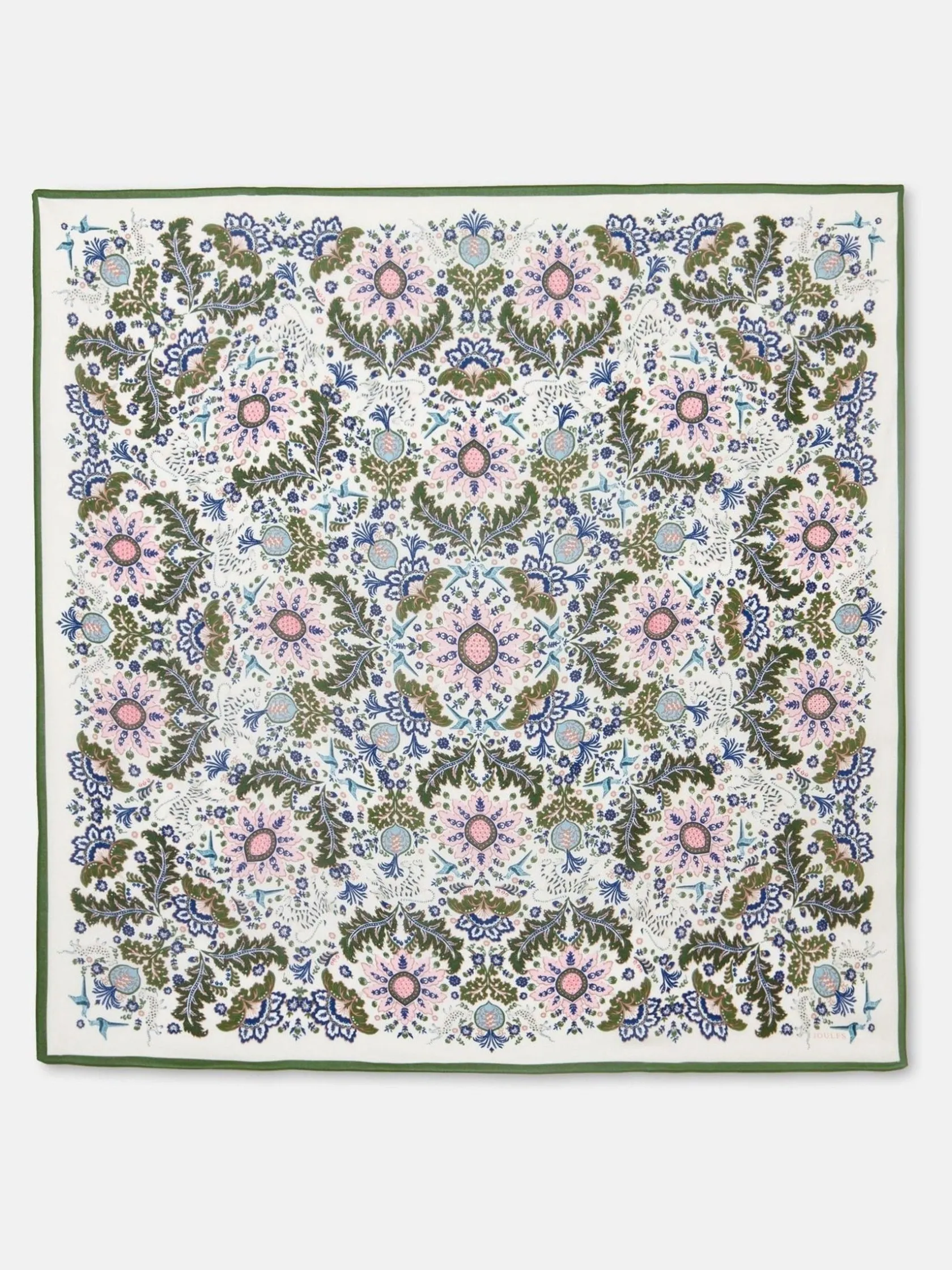 An intricately printed scarf is a simple yet effective way to elevate everyday looks. The Middleton scarf is lightweight and adorned in a beautiful hand-drawn print. Its versatile square shape means you can style it in whichever way takes your fancy, whether that’s tied in your hair or as a head scarf. Viscose. Square. Lightweight. Hand-drawn heritage print. Dimensions: 95 x 95cm