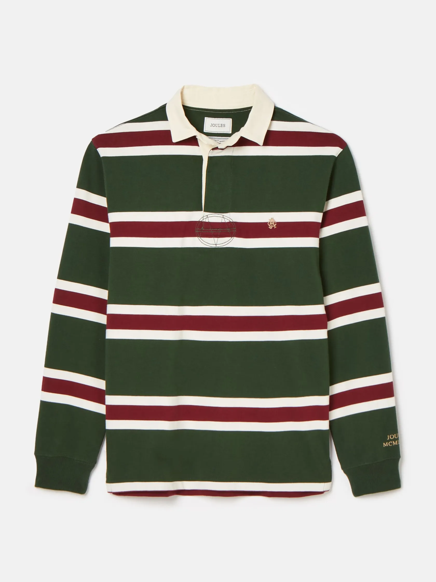 An iconic style that has lived long in men’s wardrobes, the Onside rugby shirt carries a preppy yet sporty look. It features the hallmarks of a traditional rugby shirt including a heavyweight cotton jersey construction, a concealed placket with rubber buttons, a pointed twill collar with undercollar stitching and wide horizontal stripes. Crafted with premium fabric, it’s a hardwearing style that will be part of your off-the-field attire for a long time. It’s finished with Joules Rugby Club embroidery to the chest, side splits, ribbed cuffs and reinforced top stitching to the placket. Pick it up in an assembly of colours. Cotton. Heavyweight jersey. Twill collar with undercollar stitching. Concealed button placket. Traditional rubber buttons. Side splits. Ribbed cuffs. Joules Rugby Club embroidery to the chestnStriped