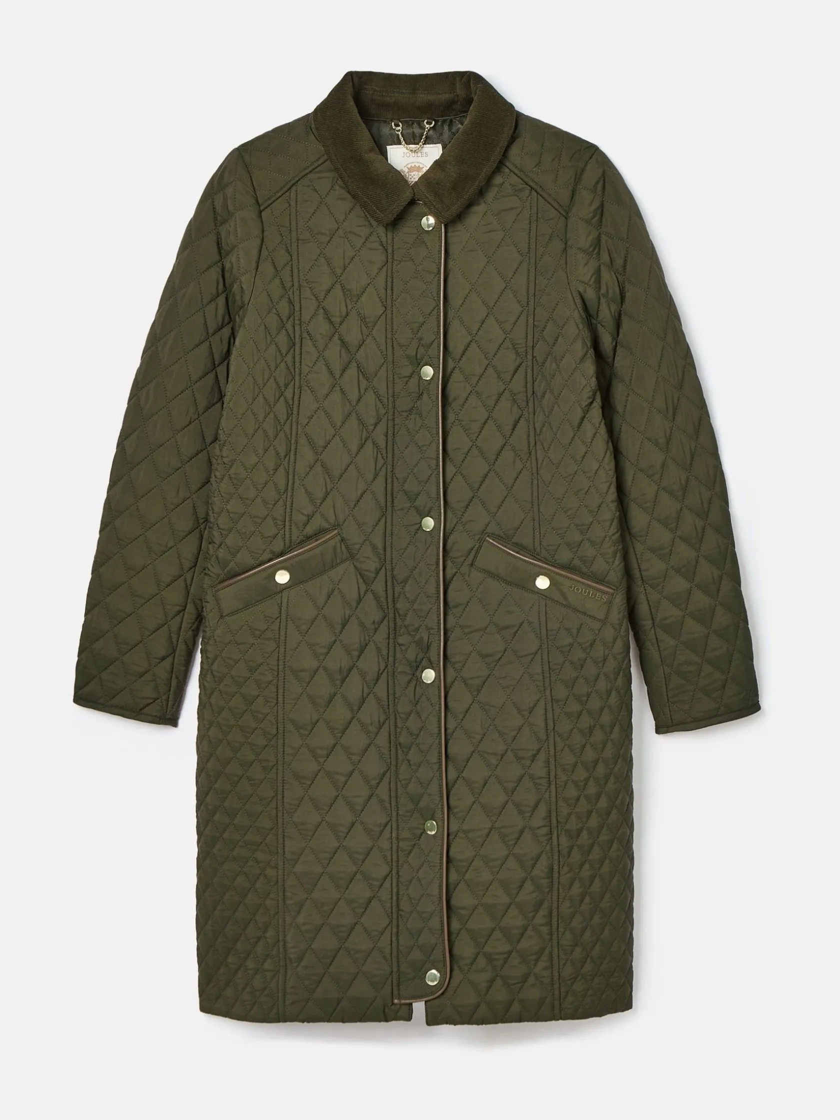 Sale Joules Rosewell Khaki Green Showerproof Longline Diamond Quilted Coat KhakiGreen