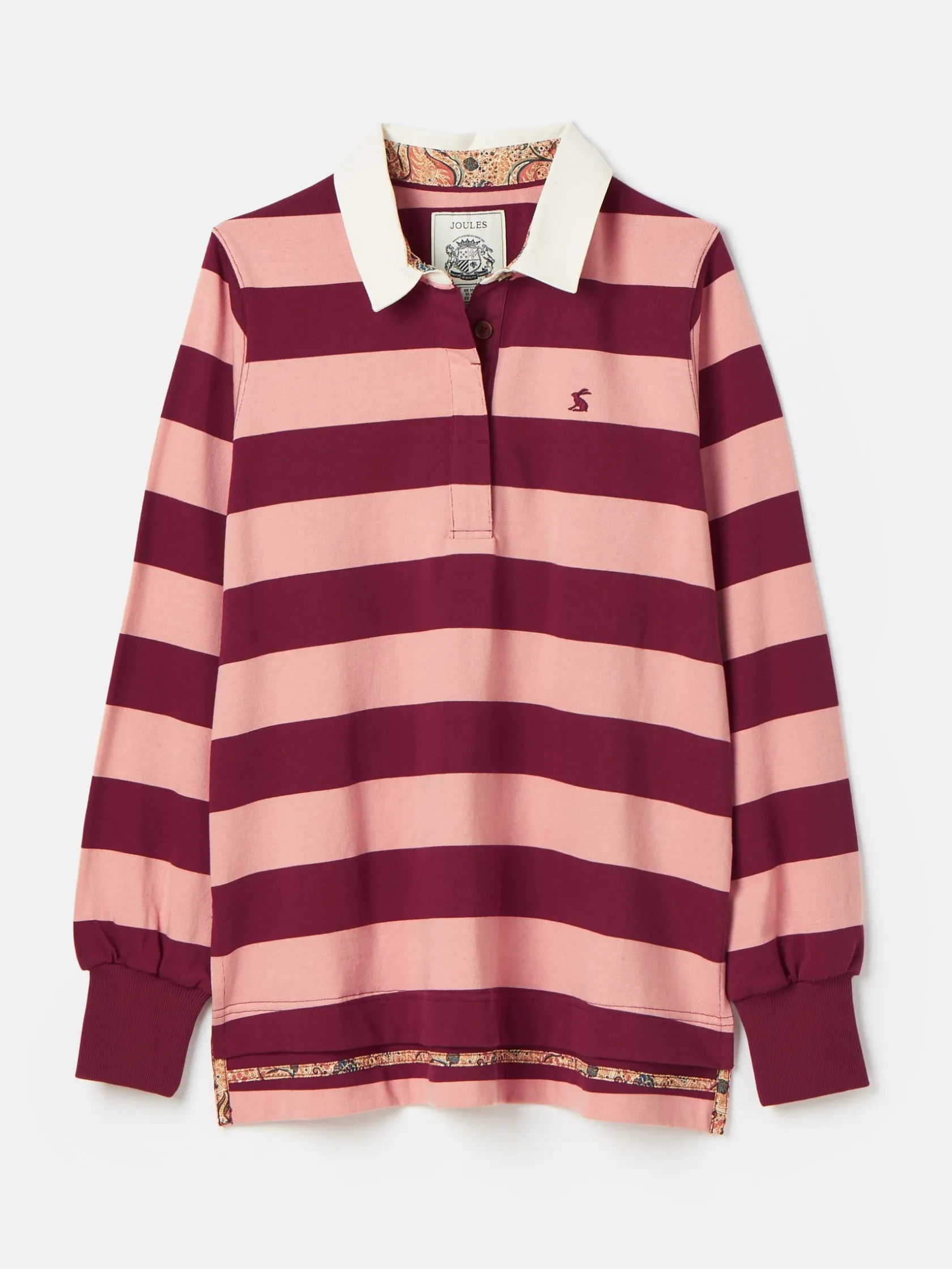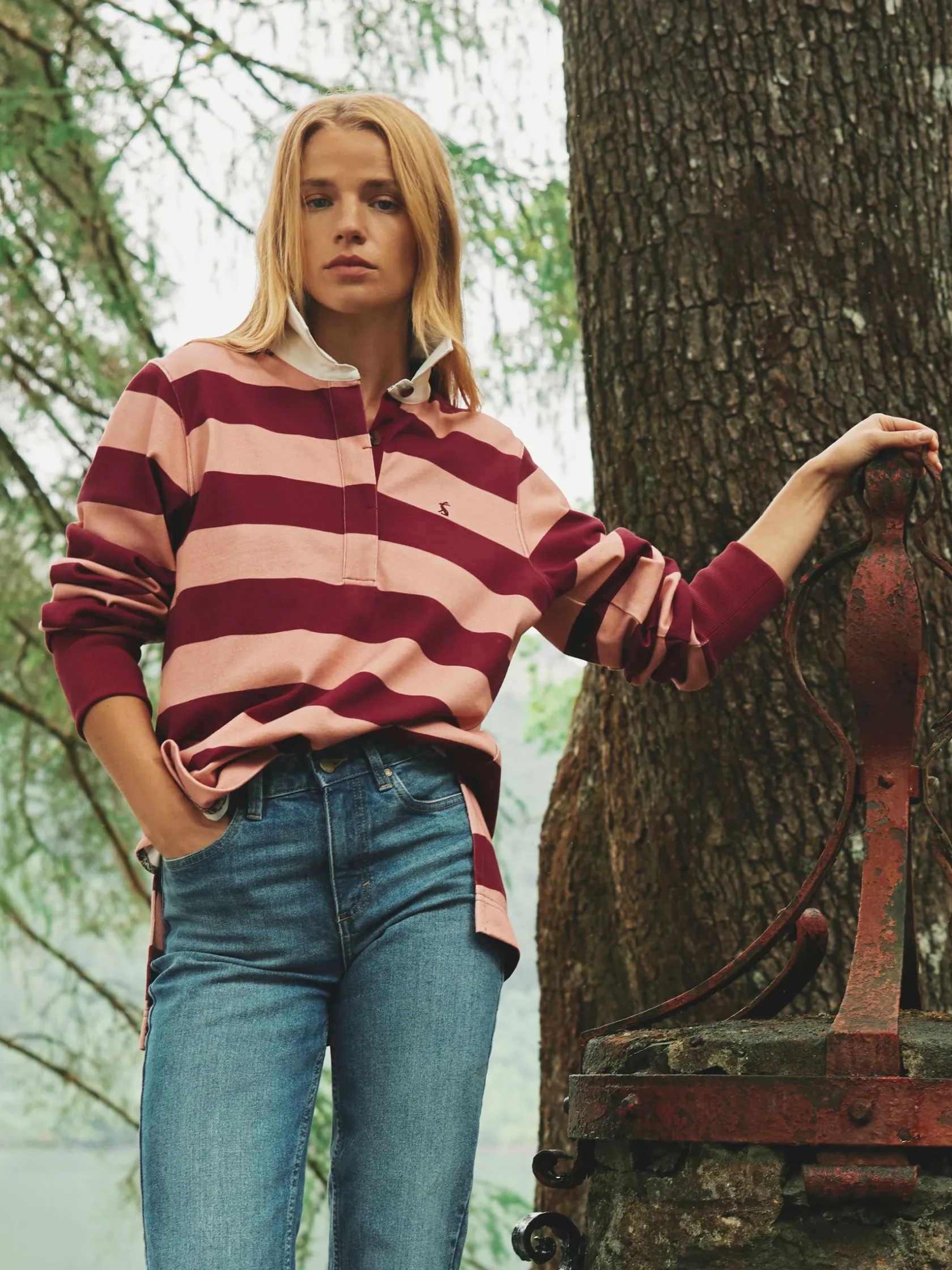 Sale Joules Sammie Pink & Red Striped Heavyweight Cotton Rugby Shirt Pink&RedStriped